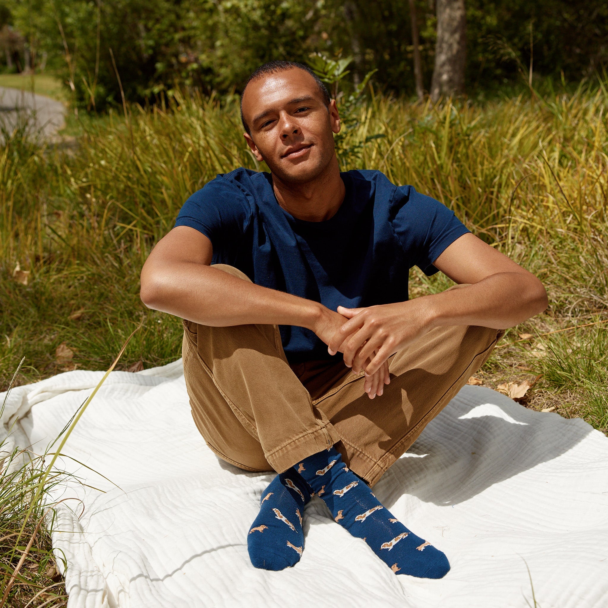 Keep it low and slow with this navy pair inspired by pups with short legs and big personalities! This design, featuring corgis, dachshunds, and basset hounds is perfect for dog lovers with a special love for low-riders.