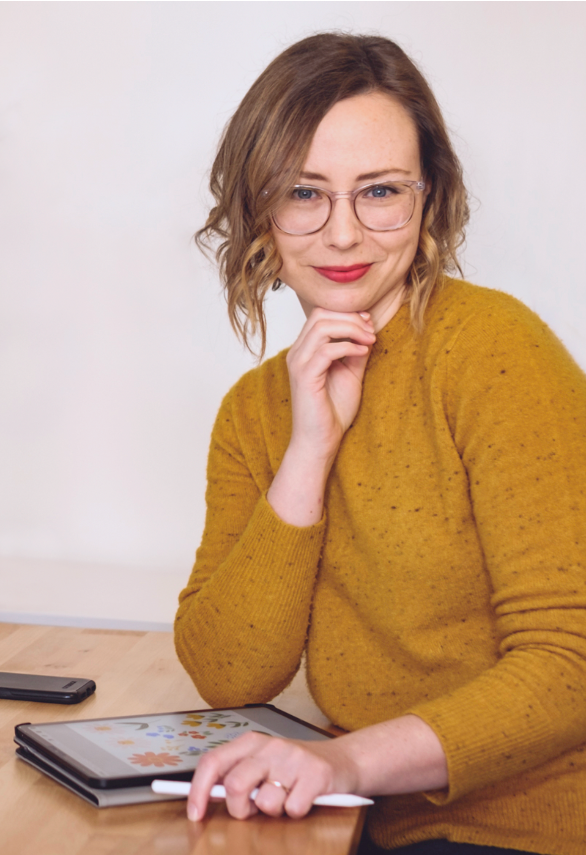 Artist: Genna Blackburn is an illustrator, surface designer and educator in Detroit, Michigan. Her work is a playful exploration of color and shape stemming from her background in graphic design. She loves drawing, seeing her work on fun products out in the world, and teaching other artists what she knows about creating artwork and presenting it in a beautiful portfolio.