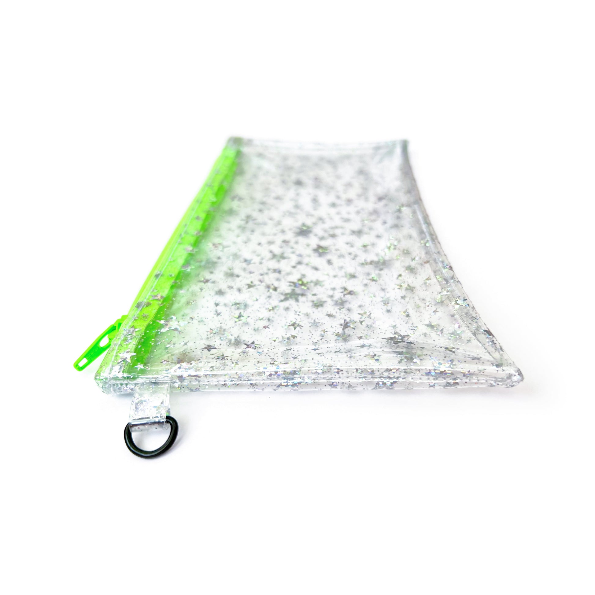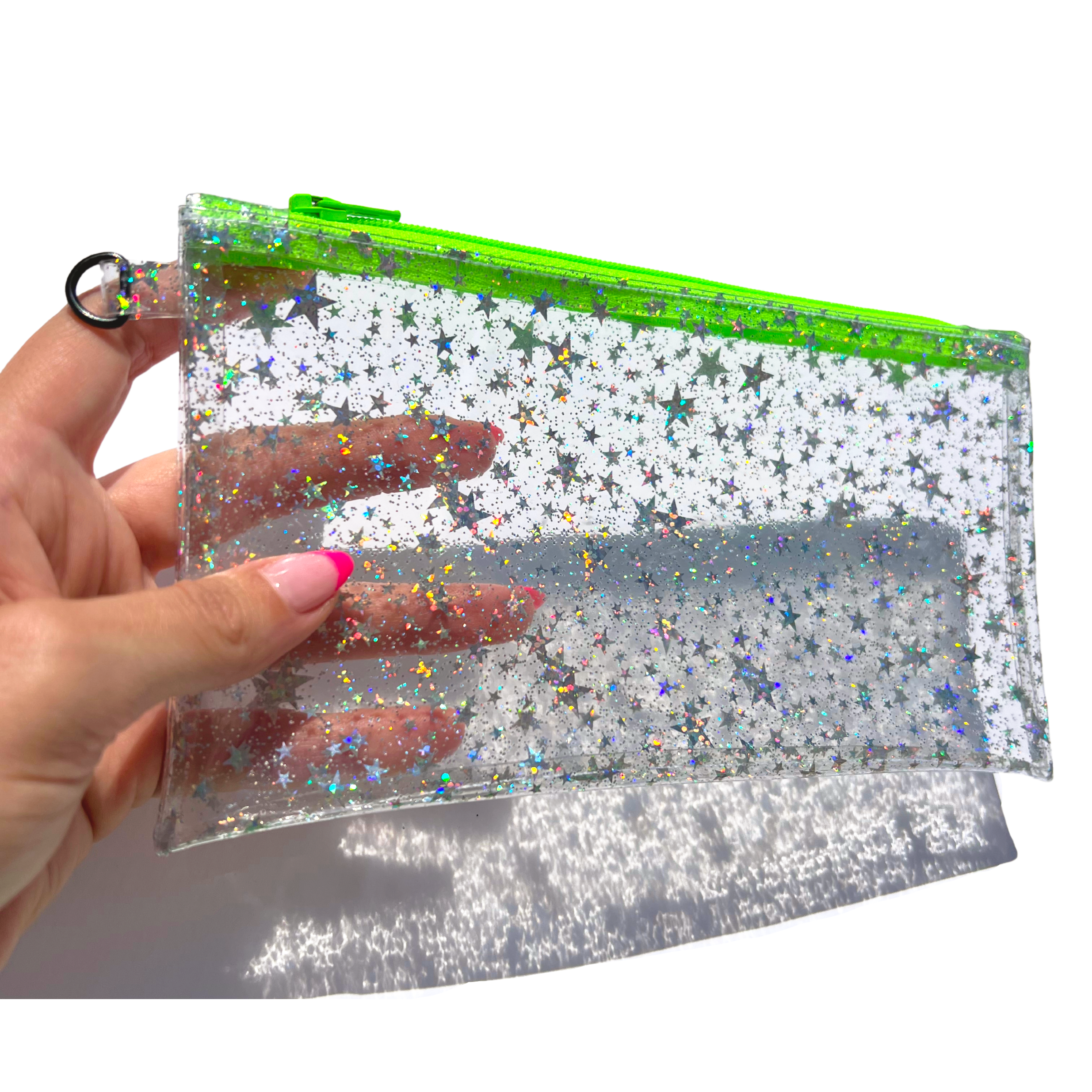 • 12 gauge transparent glitter vinyl with iridescent stars