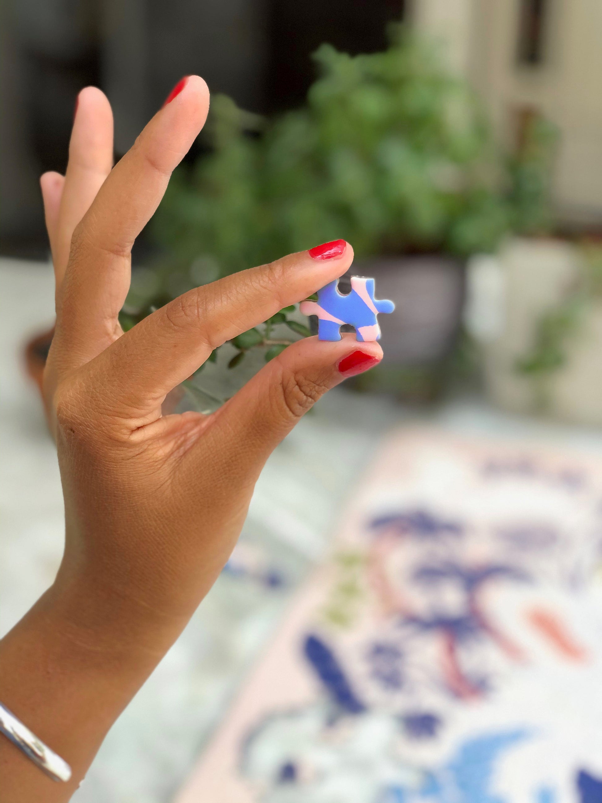 Each JIGGY puzzle comes in a reusable glass jar and includes a tube of puzzle glue, a straight-edge tool to spread the glue and a print of the art to follow.