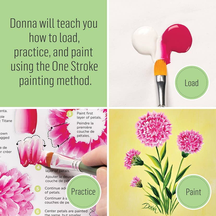 Follow along with Donna Dewberry as she teaches you how to paint her favorite florals. In the FREE interactive how-to video included, Donna Dewberry breaks down her famous One Stroke method while demonstrating how to paint perfect details and master brush strokes. Anyone can learn to paint flowers with the FolkArt One Stroke Beginner Painting Kit.