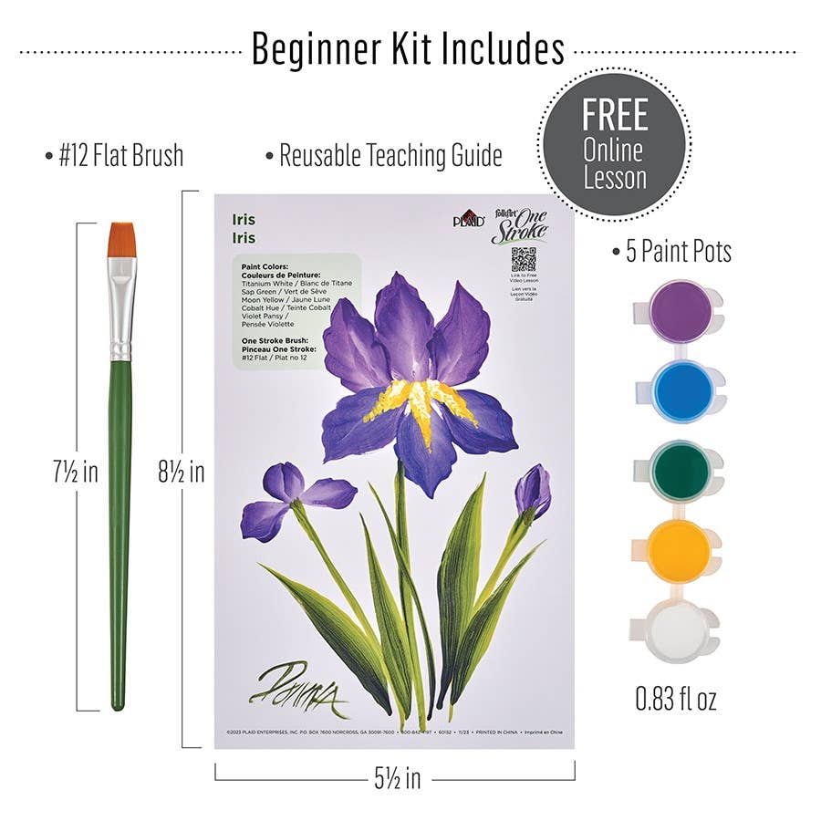 Follow along with Donna Dewberry as she teaches you how to paint her favorite florals. In the FREE interactive how-to video included, Donna Dewberry breaks down her famous One Stroke method while demonstrating how to paint perfect details and master brush strokes. Anyone can learn to paint flowers with the FolkArt One Stroke Beginner Painting Kit.