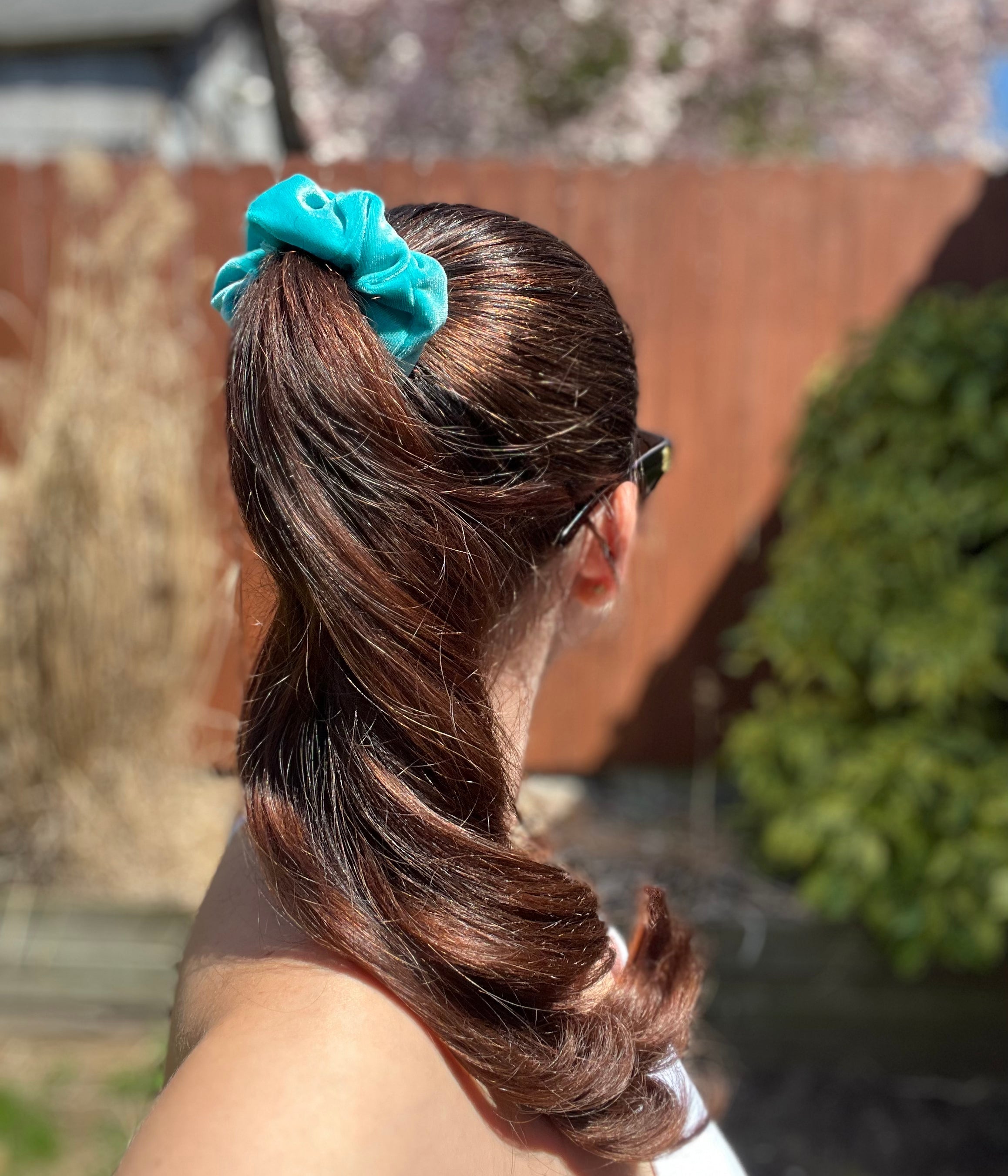 NEON SOL's oh-so plush stretch velvet scrunchies are comfy, cute, a standout fashion accessory, and of course super gentle on your hair. Basically a big ol' hug for your ponytail.