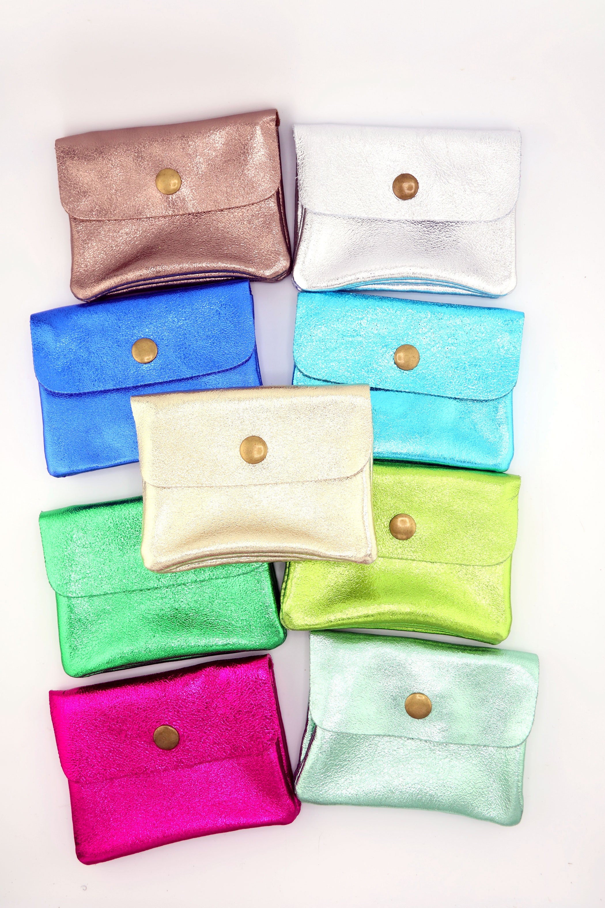 Delightfully luxurious and supple, these metallic Italian Leather coin purses are not only fun to look at; they're also extremely practical.