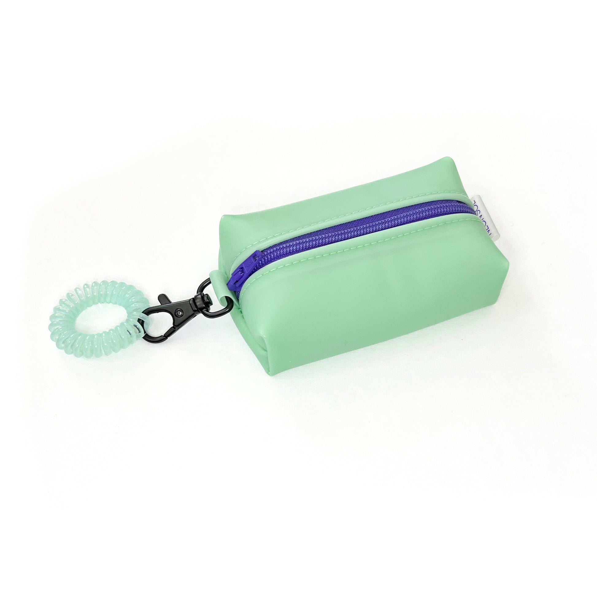 These mini boxy pouches are it! With the included stretchy wrist coil, you can have all of your little out-and-about essentials basically in the palm of your hand!