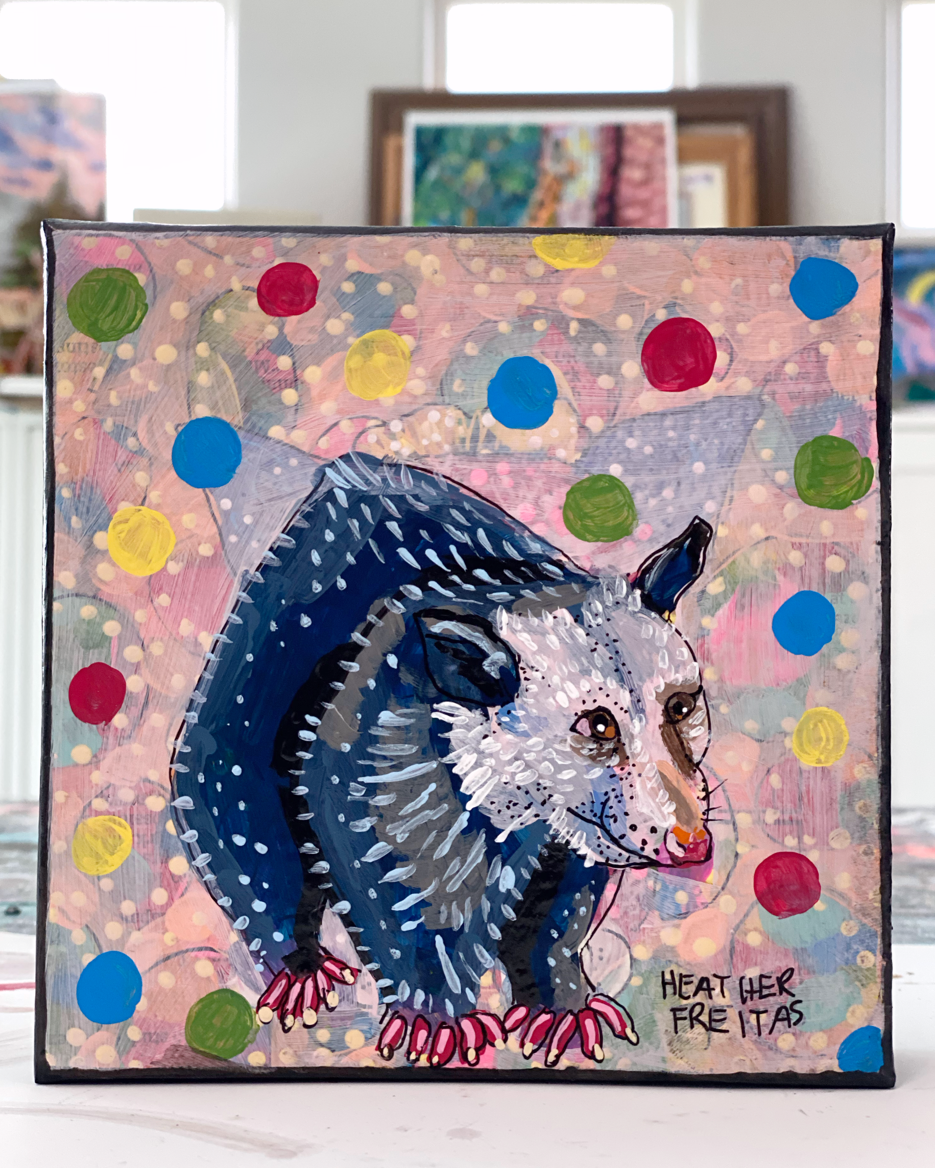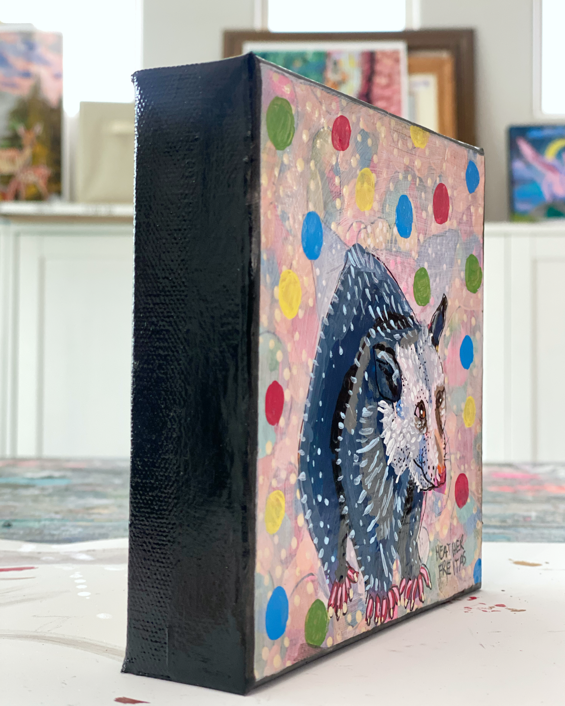 This original painting measures 6 x 6 inches and is mixed media on a deep edge gallery wrapped canvas and does not need to be framed.