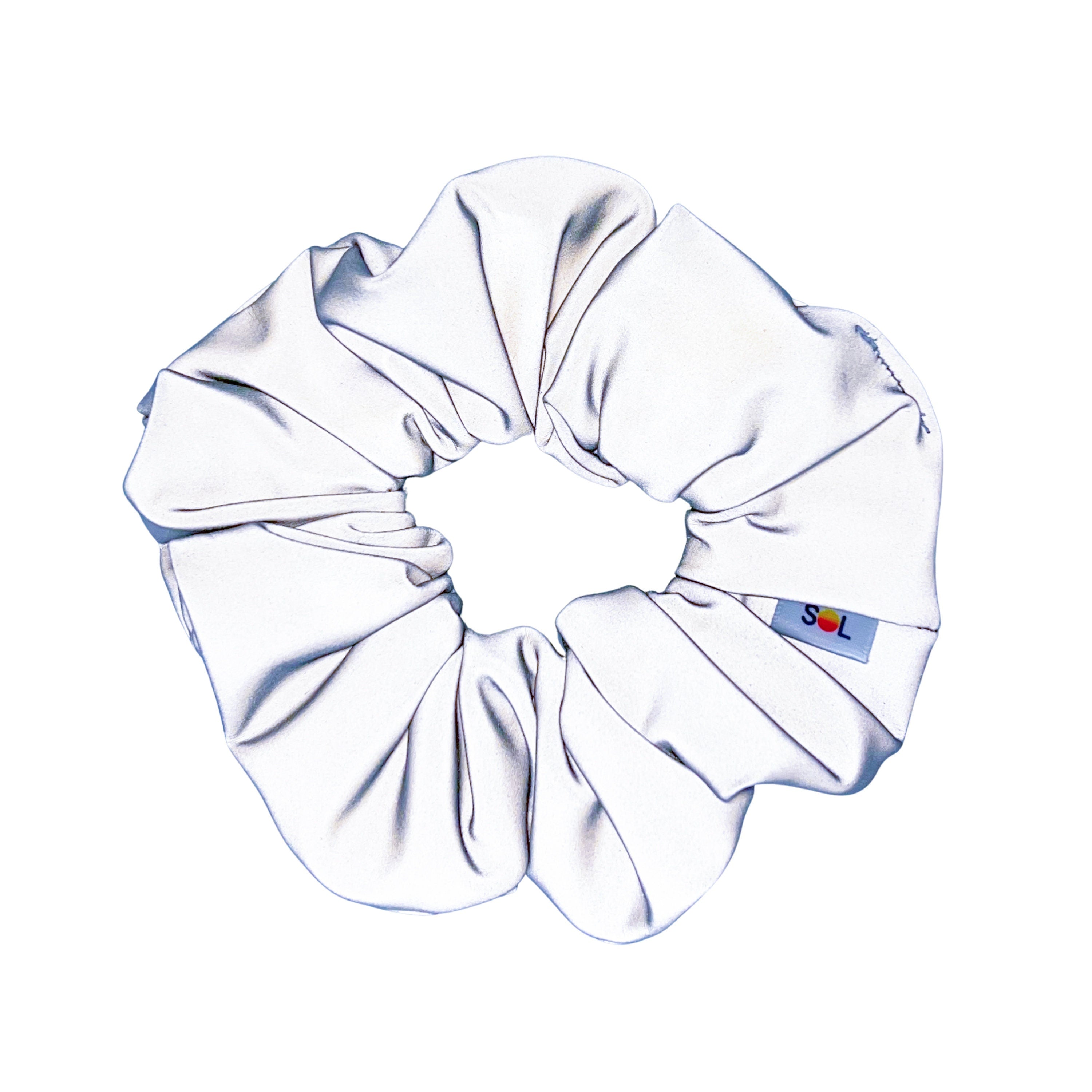 These scrunchies are a standout fashion accessory! when light hits this silver fabric, bright white is reflected back, blacking out everything around it!