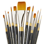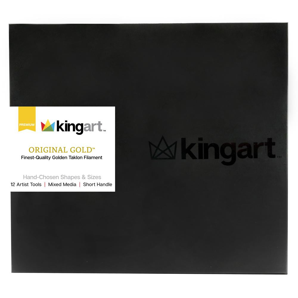 KINGART® Original Gold® Series Premium Golden Taklon Multimedia Artist Brushes, Painting Tools for Oil, Acrylic, Watercolor and Gouache, Gift Box, Set of 12