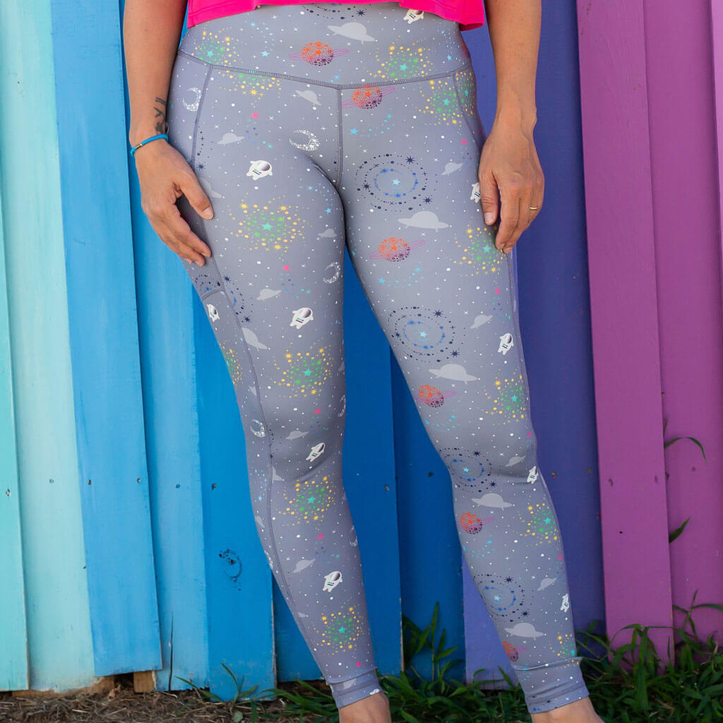 Our comfortable, sporty leggings have deep side pockets to keep your stuff from floating away during your daily spacewalk.
