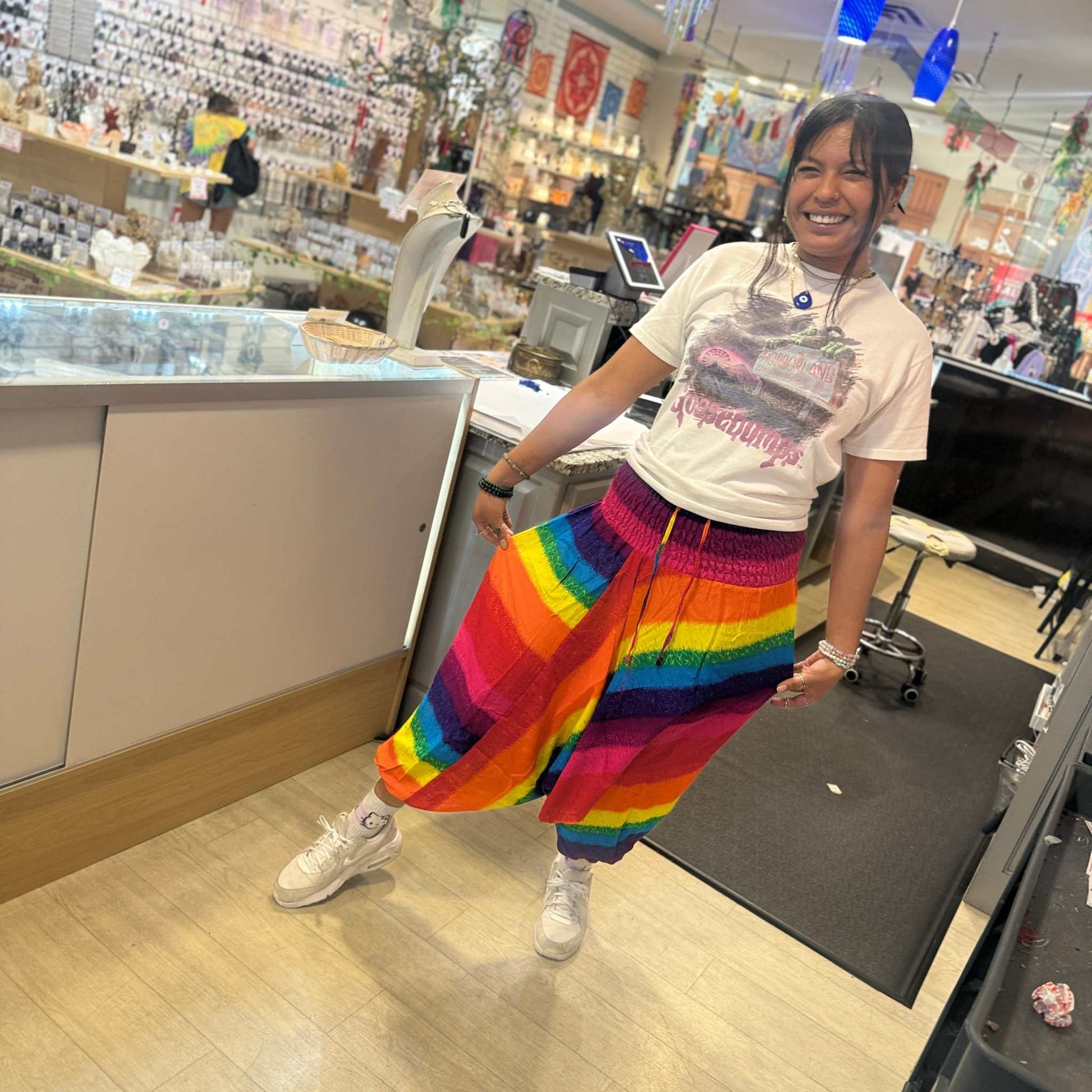 Step into comfort and color with our Rainbow Harem Alibaba Onesie Pants! Made from lightweight, breathable rayon, these pants keep you cool while showing off your vibrant pride. Their loose, harem-style fit offers freedom of movement and a playful flair perfect for lounging or dancing through your day. Embrace fun and comfort in every step!