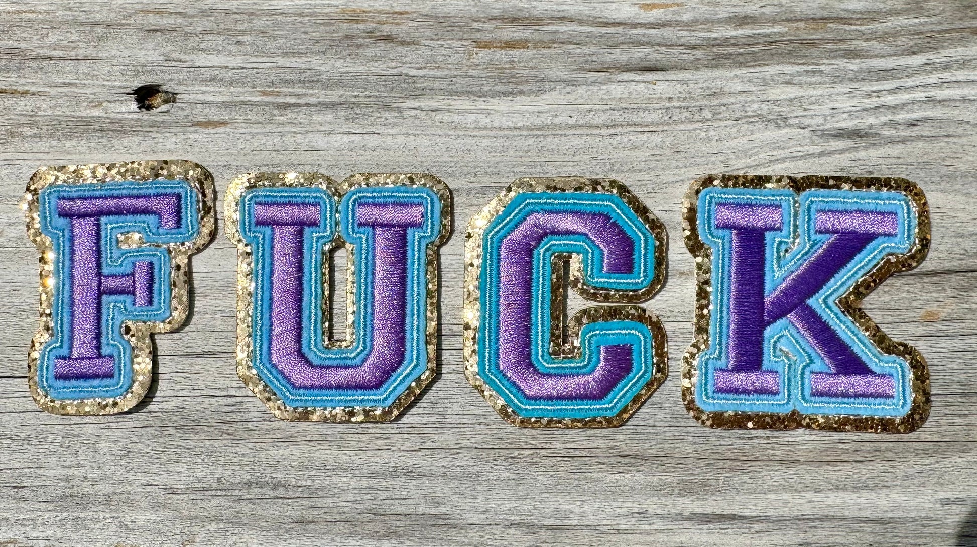 It's our favorite word, we took a vote and everything. These colorful iron-on patches feature the most versatile word in the English language with a bunch of gold glitter and purple and blue embroidery. Use them to add a sparkly version of our favorite word to hats, bags, pouches, clothing, backpacks, pillows, or something else cool I haven't thought of yet!