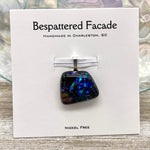 All Magic Drop pendants are made of dichroic glass; the findings are made of nickel-free stainless steel. Dichroic means "two colors" and when this glass is viewed from different angles it shifts between multiple iridescent colors. Each piece is truly one of a kind, and dichroic glass is difficult to photograph due to its unique properties, please expect slight differences in color and pattern. You will receive the exact pendant pictured, and they're much more dramatic in person.