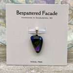 All Magic Drop pendants are made of dichroic glass; the findings are made of nickel-free stainless steel. Dichroic means "two colors" and when this glass is viewed from different angles it shifts between multiple iridescent colors. Each piece is truly one of a kind, and dichroic glass is difficult to photograph due to its unique properties, please expect slight differences in color and pattern. You will receive the exact pendant pictured, and they're much more dramatic in person.