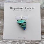 All Magic Drop pendants are made of dichroic glass; the findings are made of nickel-free stainless steel. Dichroic means "two colors" and when this glass is viewed from different angles it shifts between multiple iridescent colors. Each piece is truly one of a kind, and dichroic glass is difficult to photograph due to its unique properties, please expect slight differences in color and pattern. You will receive the exact pendant pictured, and they're much more dramatic in person.