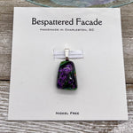 All Magic Drop pendants are made of dichroic glass; the findings are made of nickel-free stainless steel. Dichroic means "two colors" and when this glass is viewed from different angles it shifts between multiple iridescent colors. Each piece is truly one of a kind, and dichroic glass is difficult to photograph due to its unique properties, please expect slight differences in color and pattern. You will receive the exact pendant pictured, and they're much more dramatic in person.