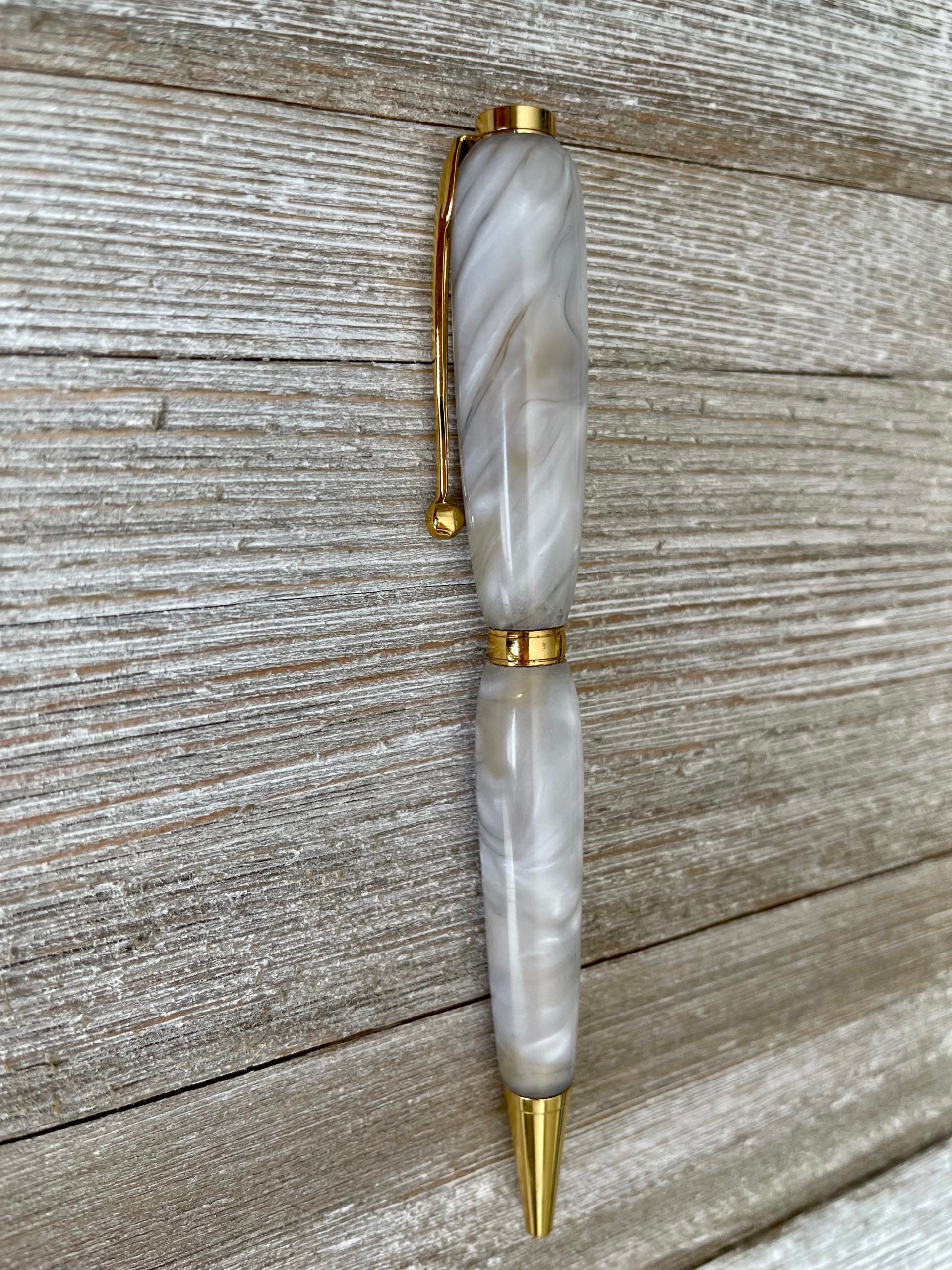 All slimline twist pens are handmade here on the farm by my dad. Each pen comes with black ink, and has a locking refill mechanism that accept Cross-style refills. You will receive the exact pen pictured.