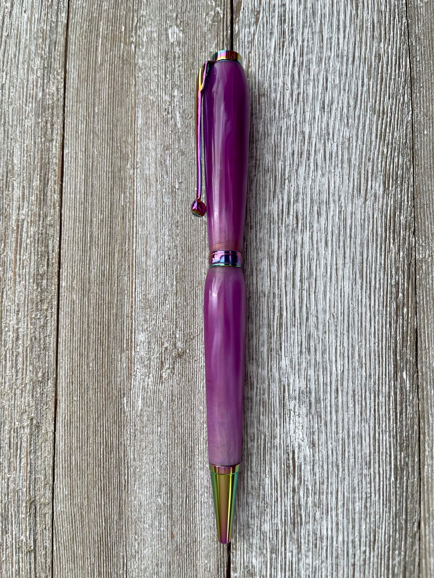 All slimline twist pens are handmade here on the farm by my dad. Each pen comes with black ink, and has a locking refill mechanism that accept Cross-style refills. You will receive the exact pen pictured.