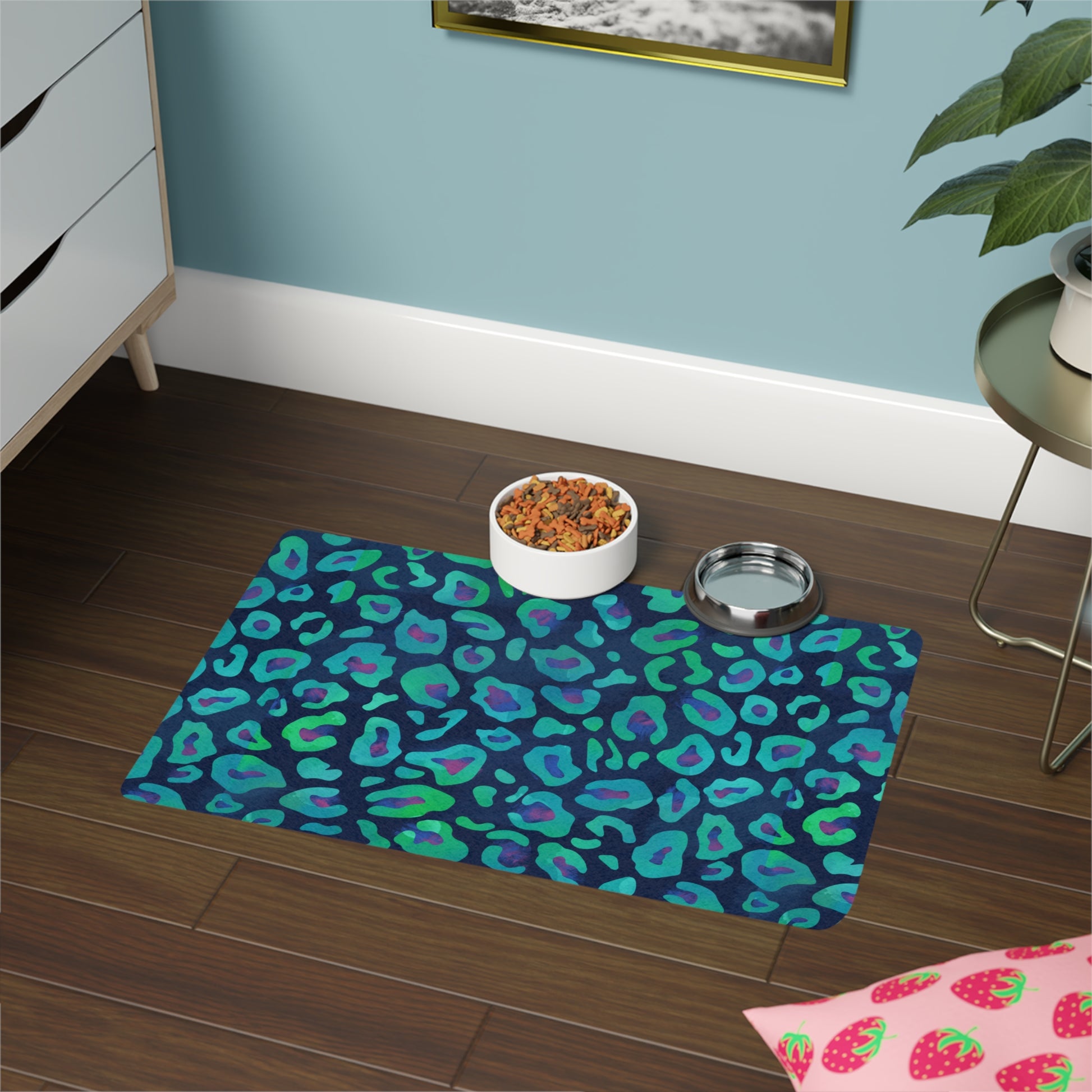 Bespattered Facade Emerald Leopard Pet Food Mat