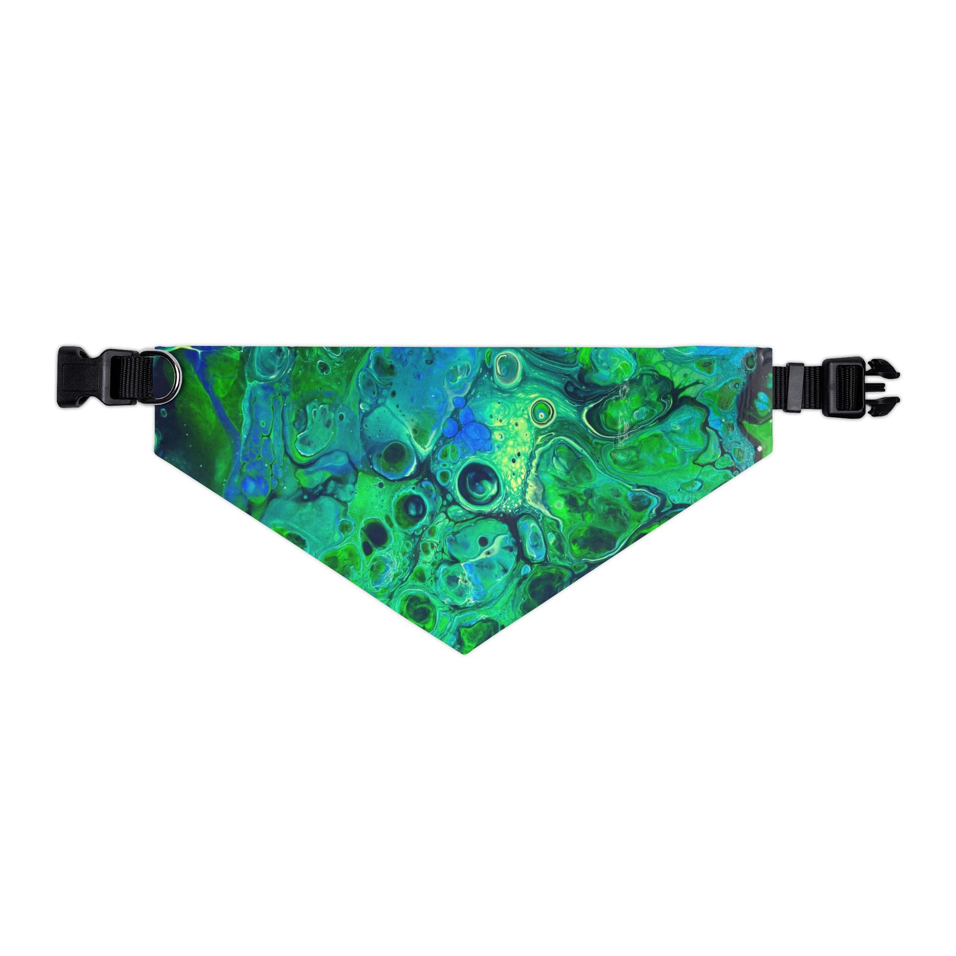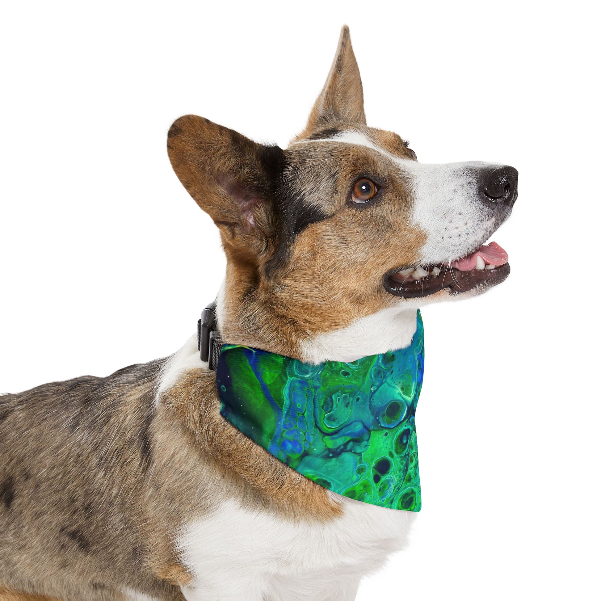The pet bandana collar puts a fun spin on standard animal accessories. It is made of polyester duck fabric and is available in four sizes to fit any pet. The construction and printing is durable enough for machine washing. The collar fastening helps to keep the bandana fitting correctly, even during play.