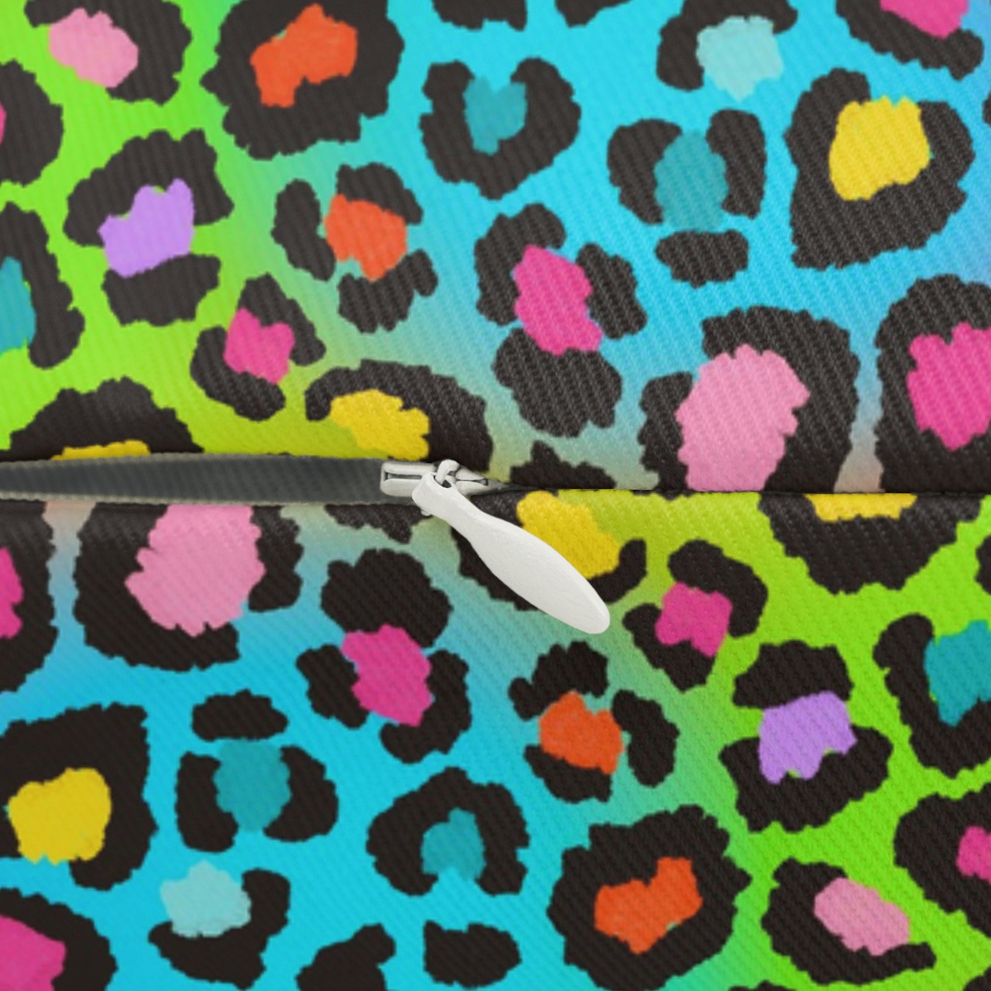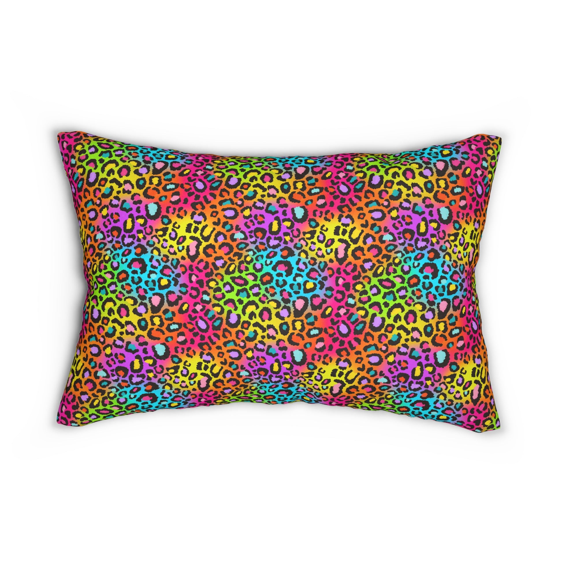 Bespattered Facade Neon Rainbow Leopard Lumbar Throw Pillow