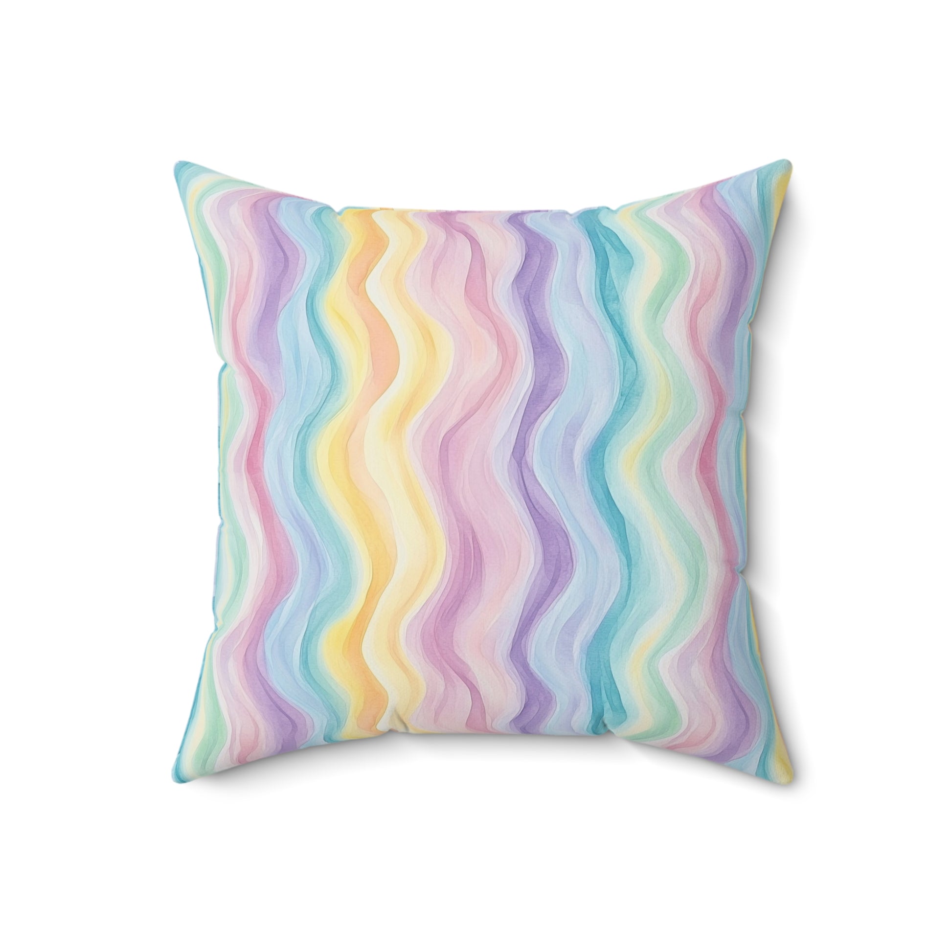 Bespattered Facade Pastel Squiggles Square Throw Pillow | 4 Sizes