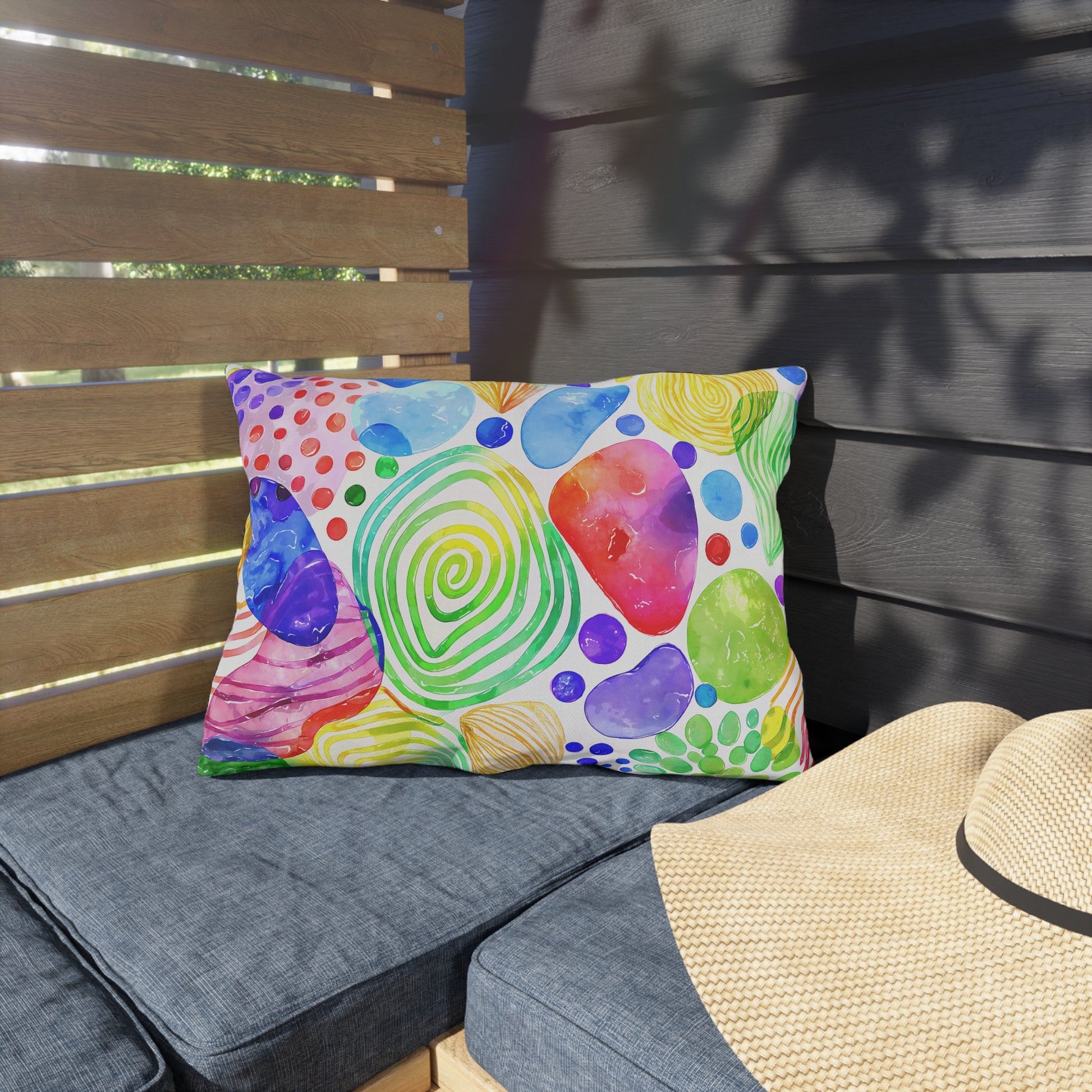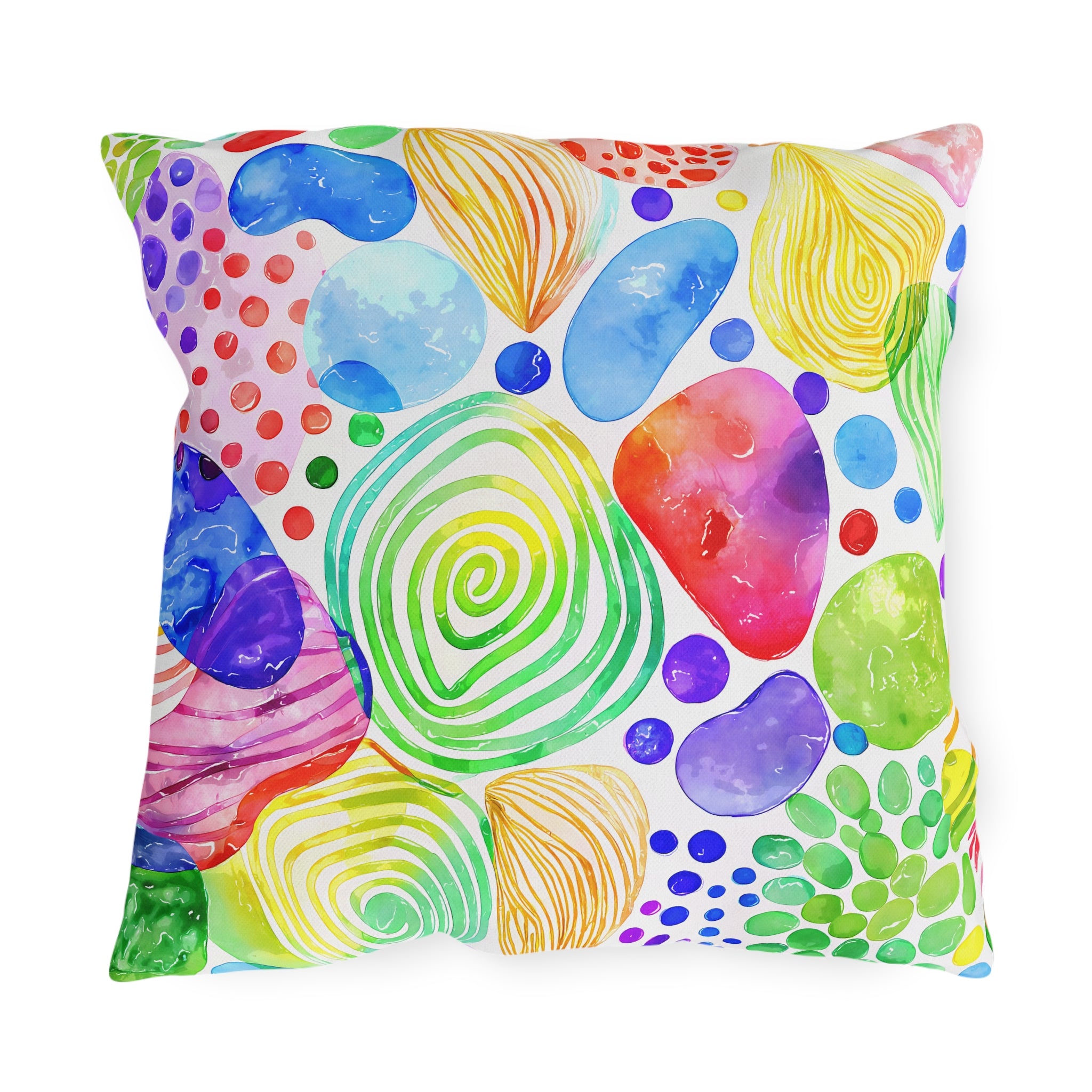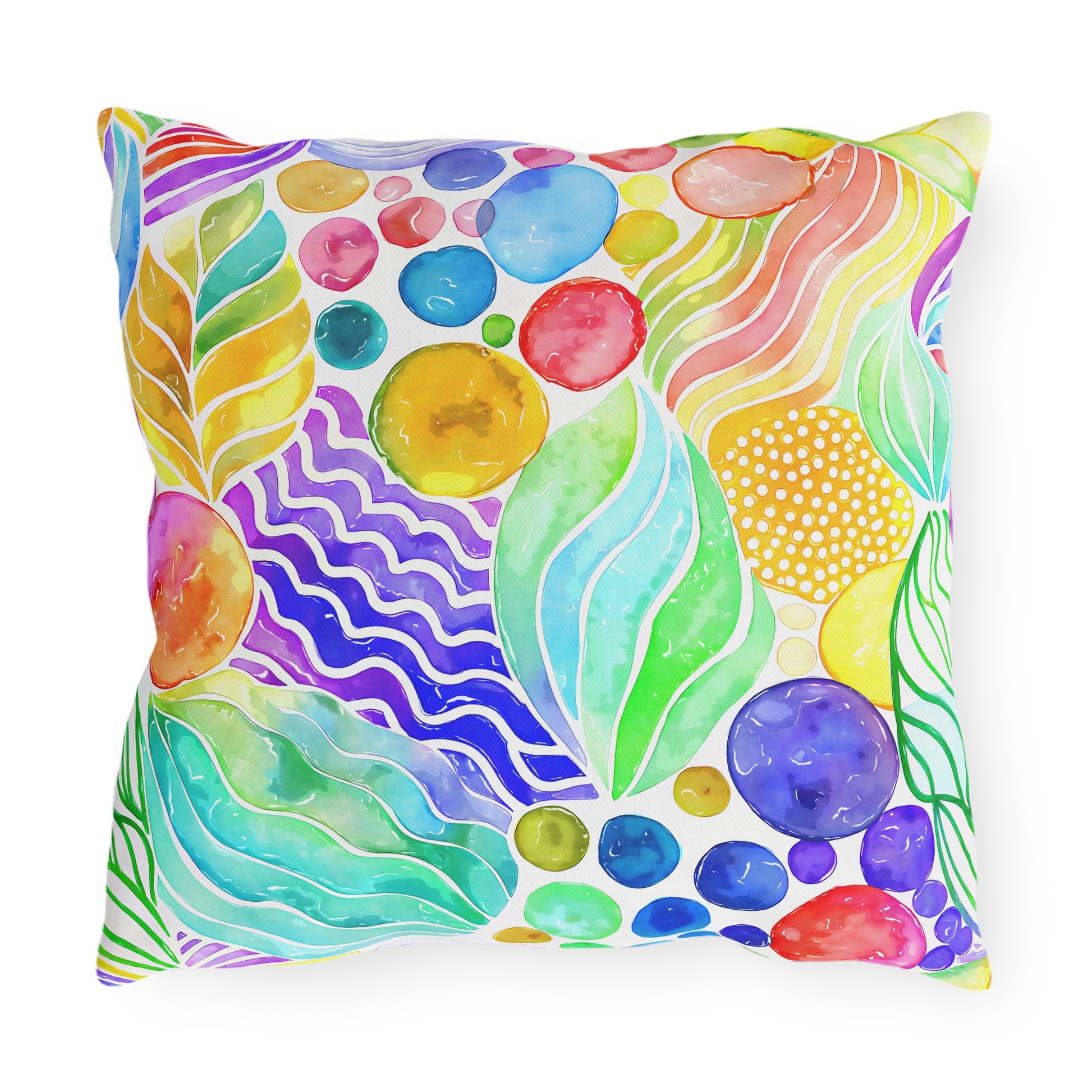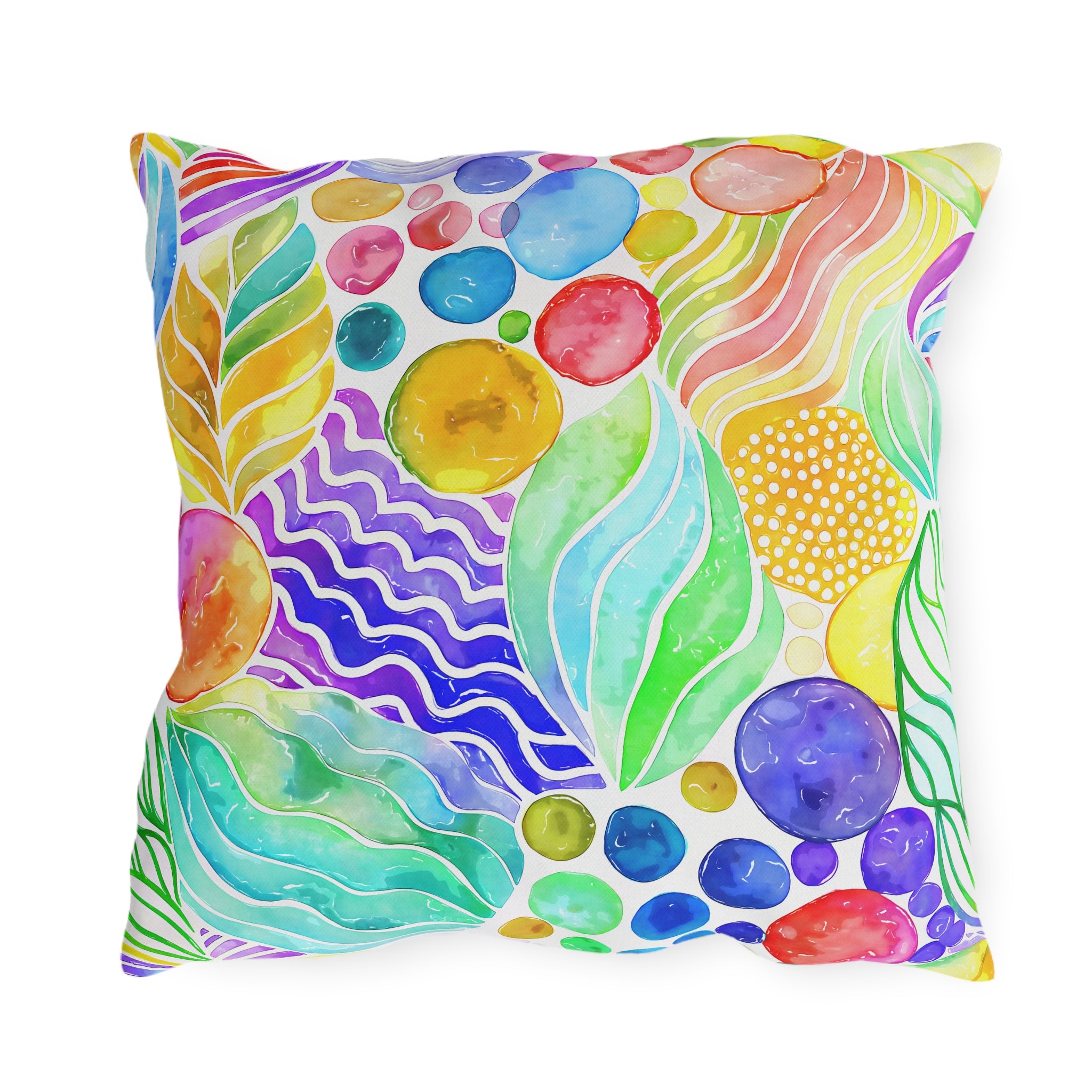 Bespattered Facade Rainbow Abstract UV-Resistant Outdoor Pillows | 4 Sizes