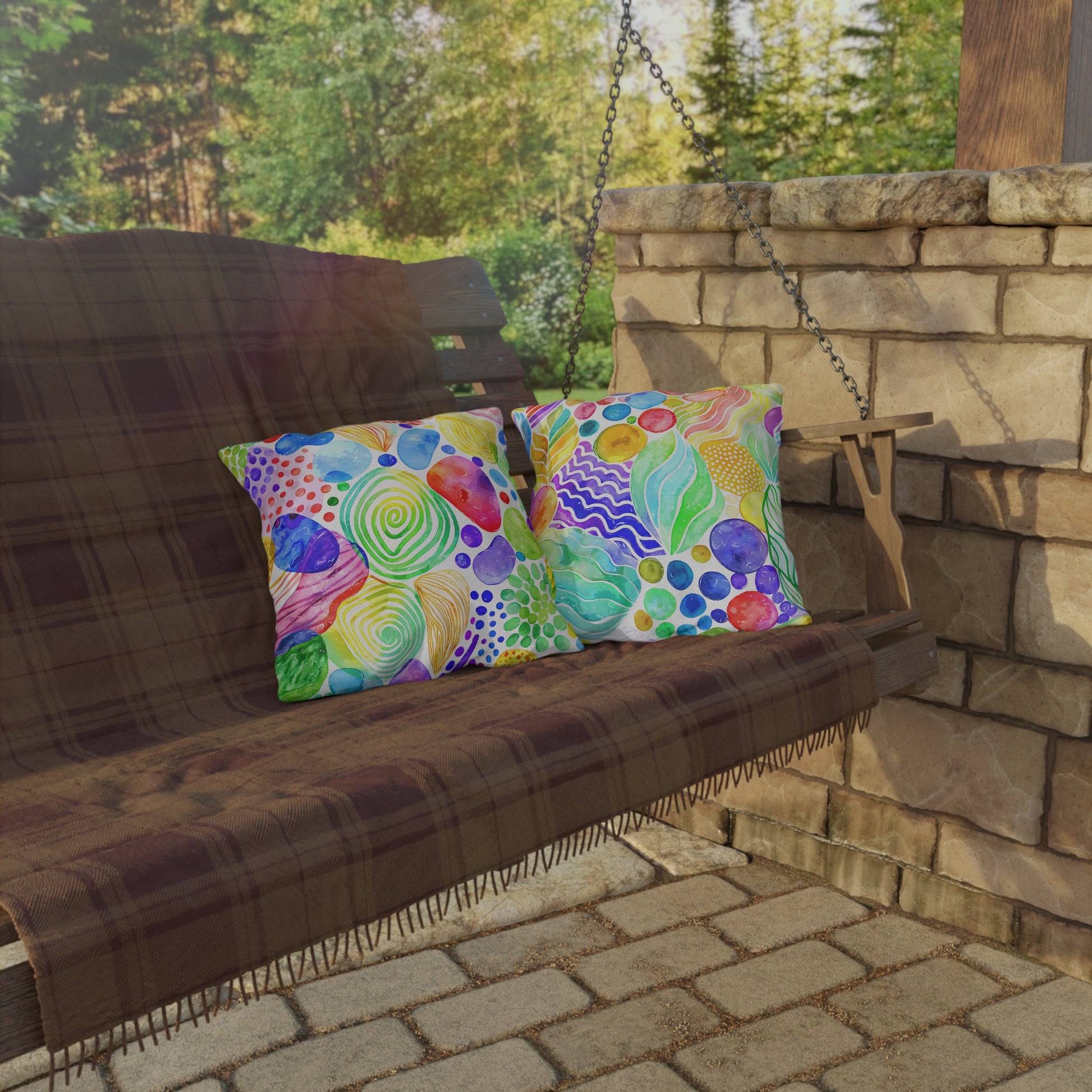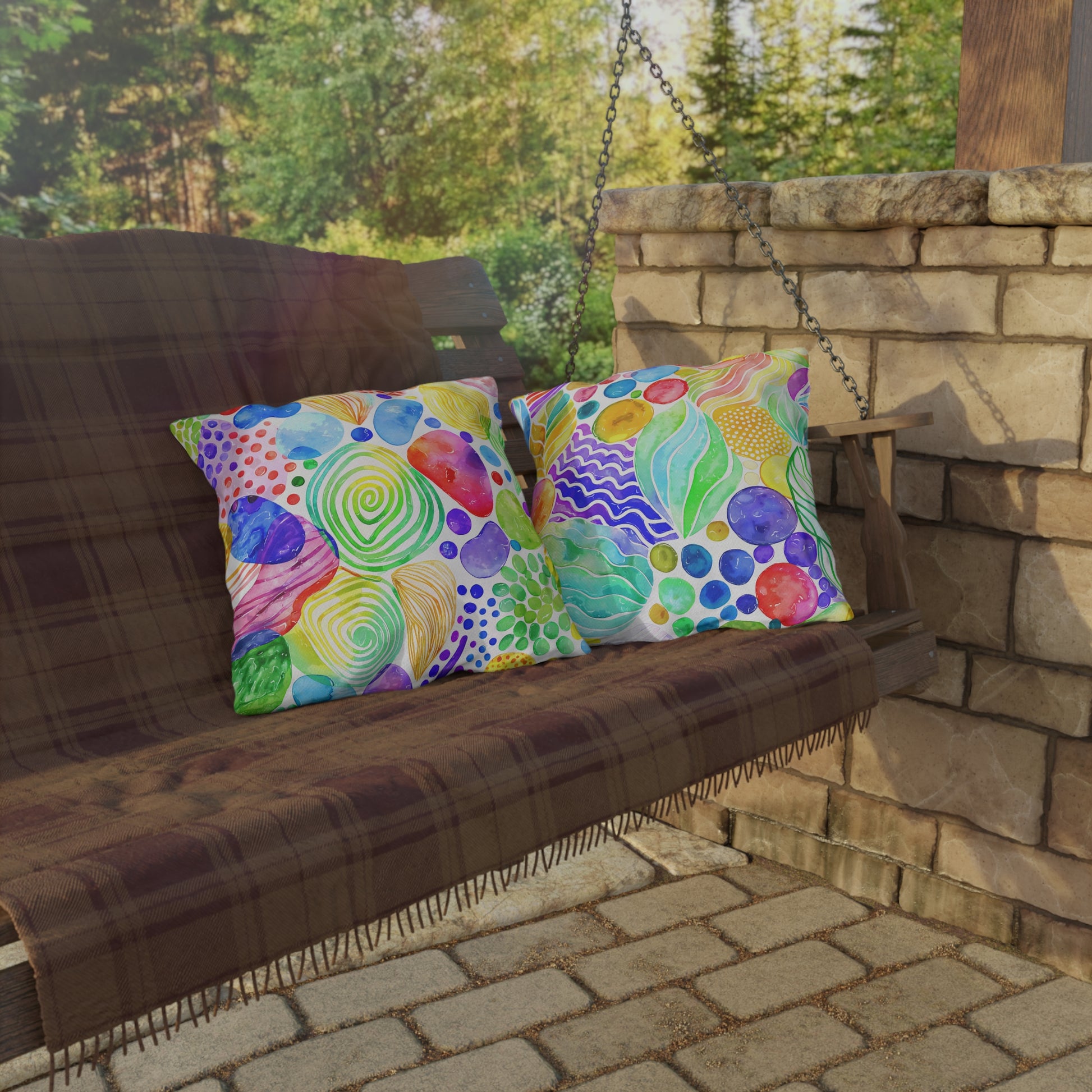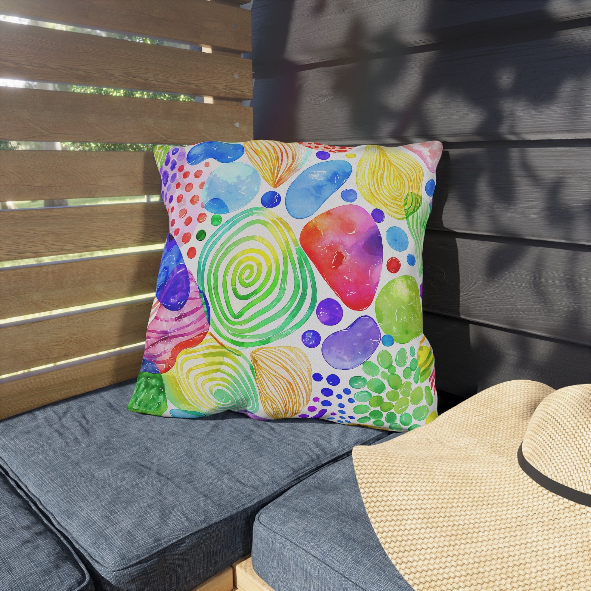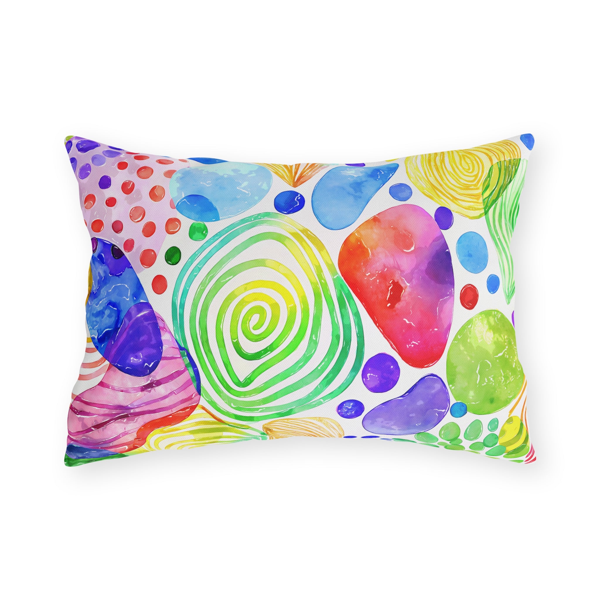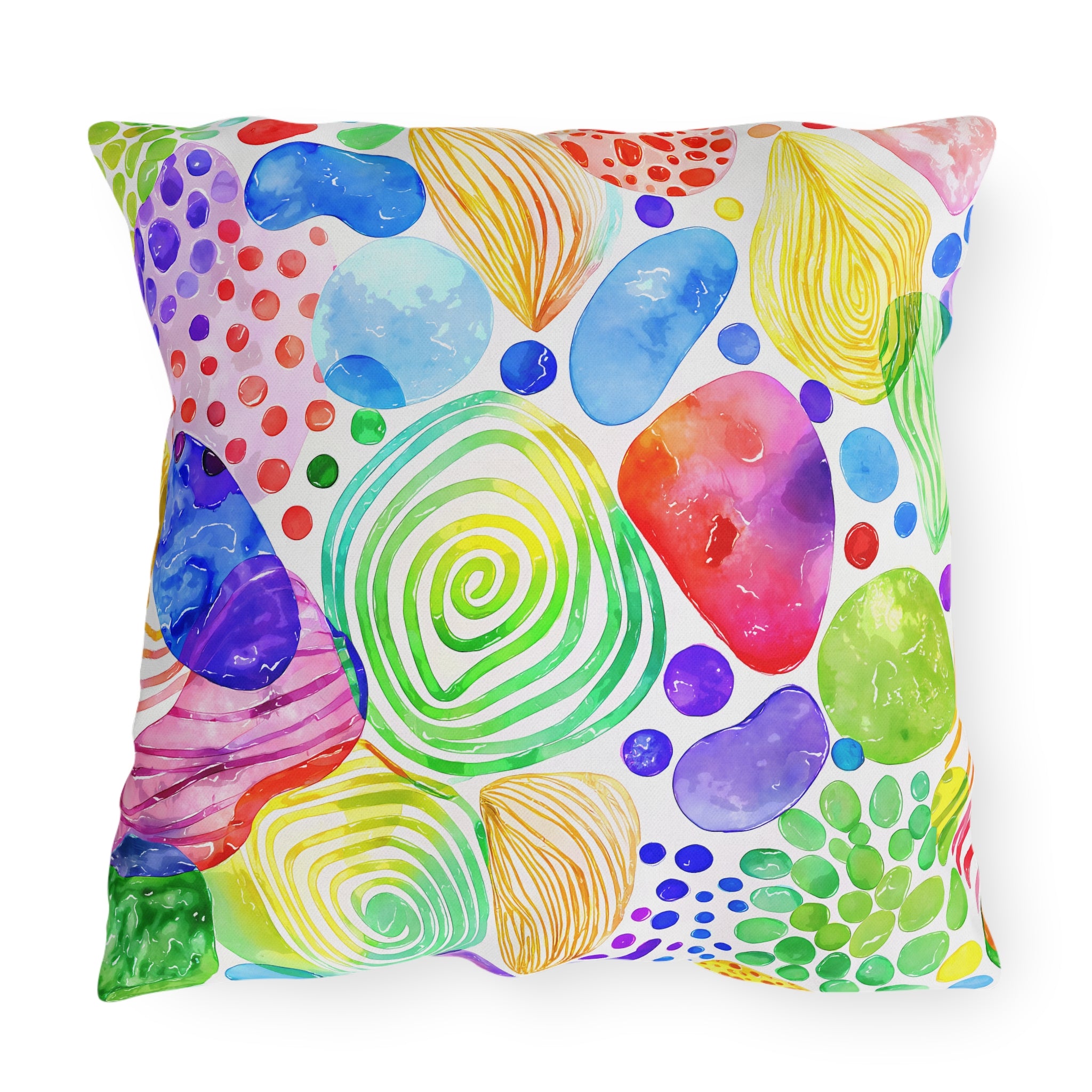 Bespattered Facade Rainbow Abstract UV-Resistant Outdoor Pillows | 4 Sizes