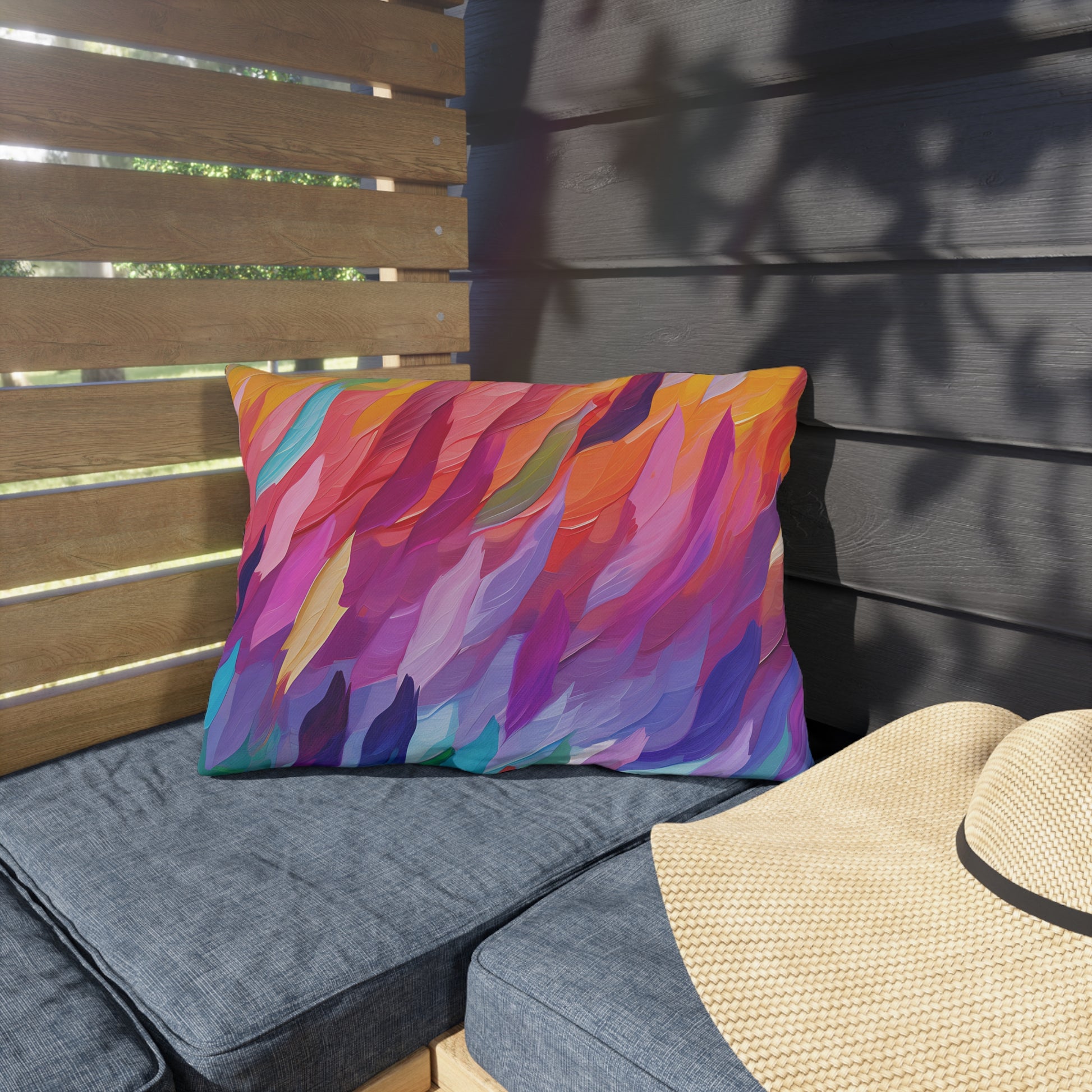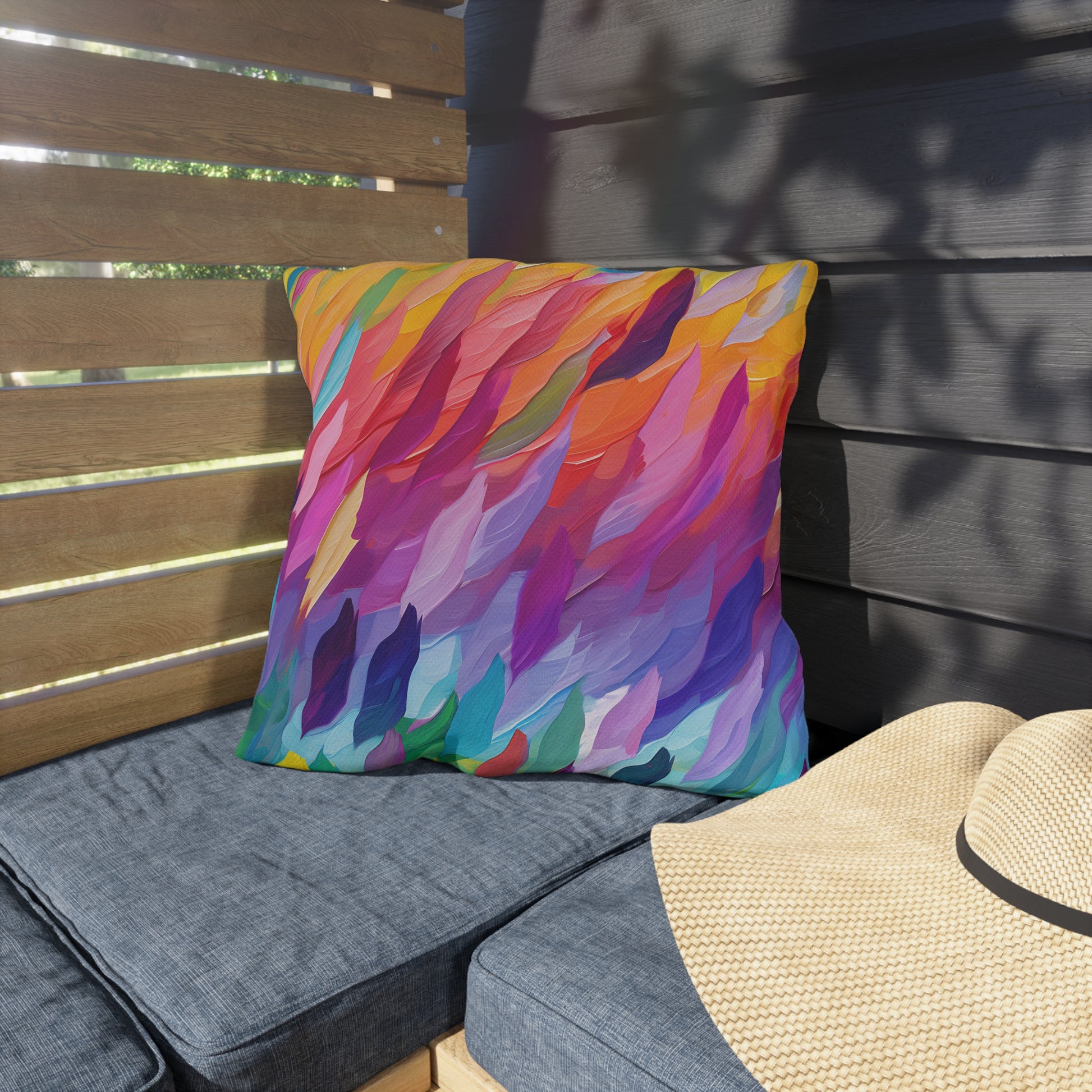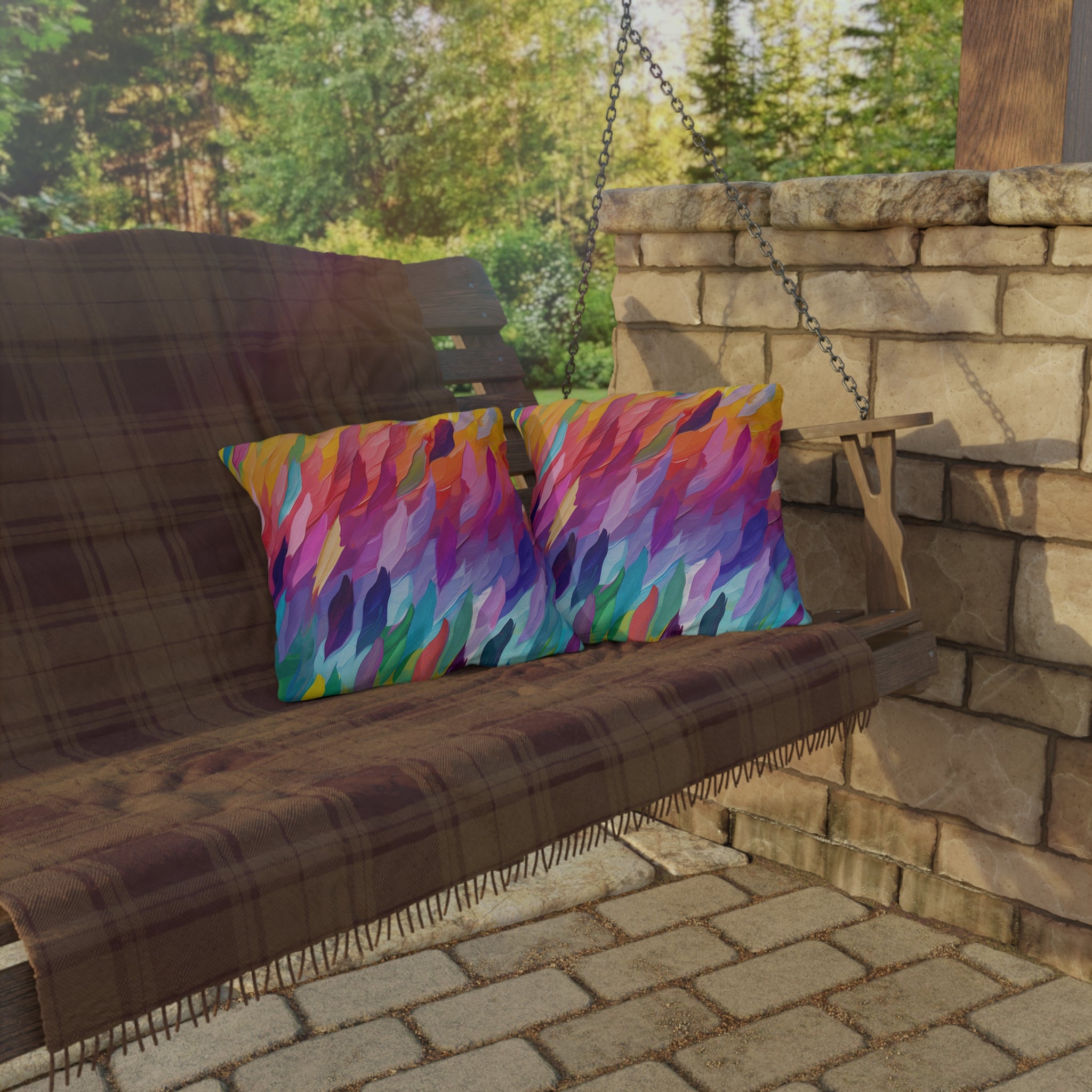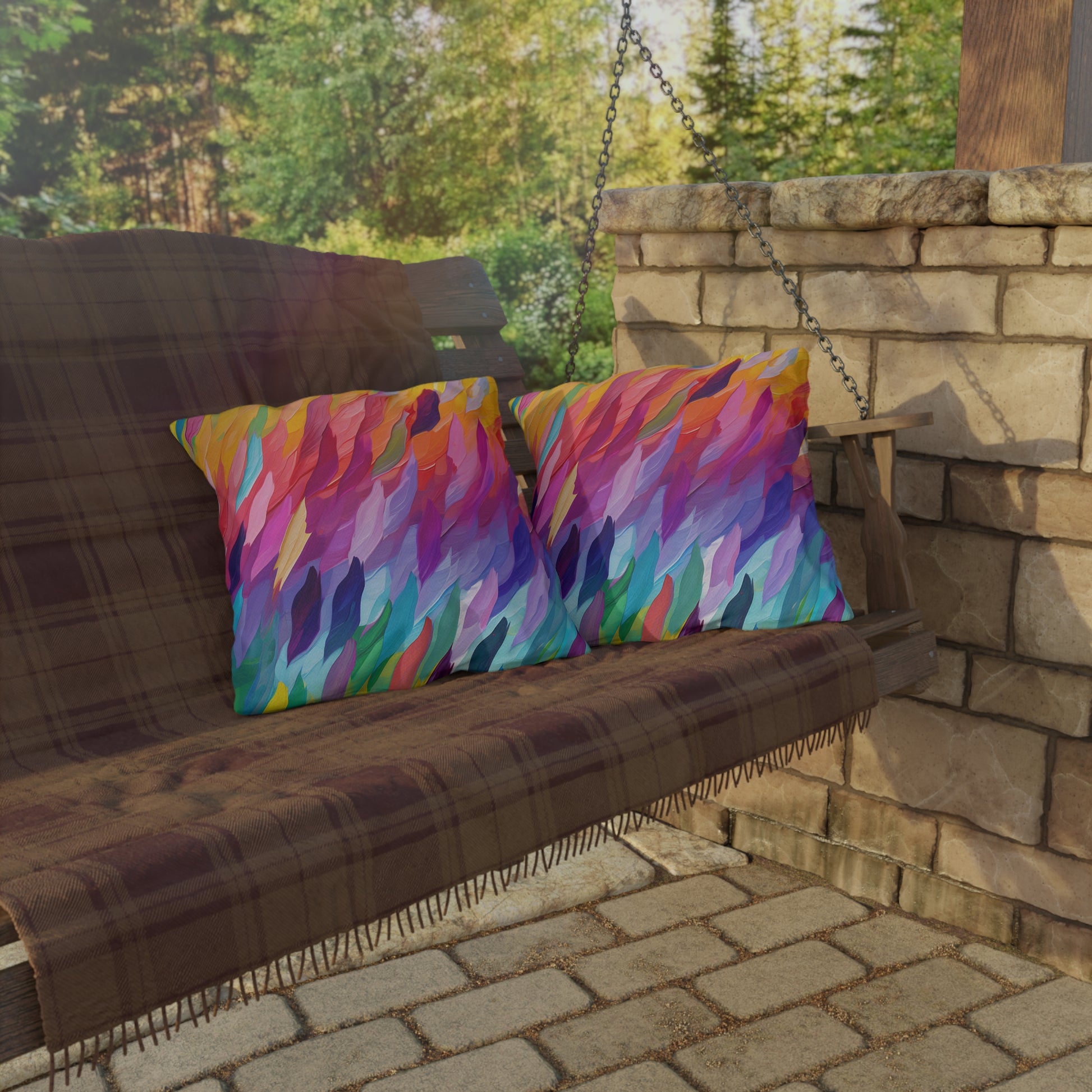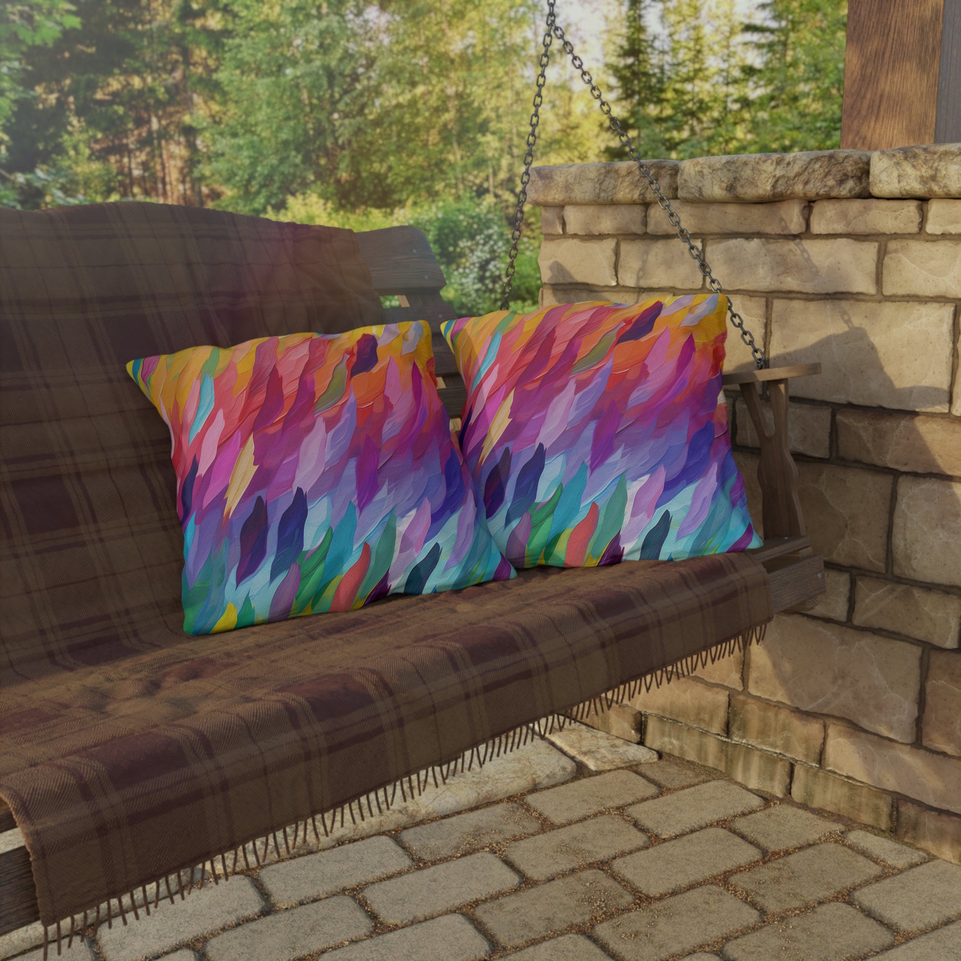 Bespattered Facade Rainbow Feathers UV-Resistant Outdoor Pillows | 4 Sizes