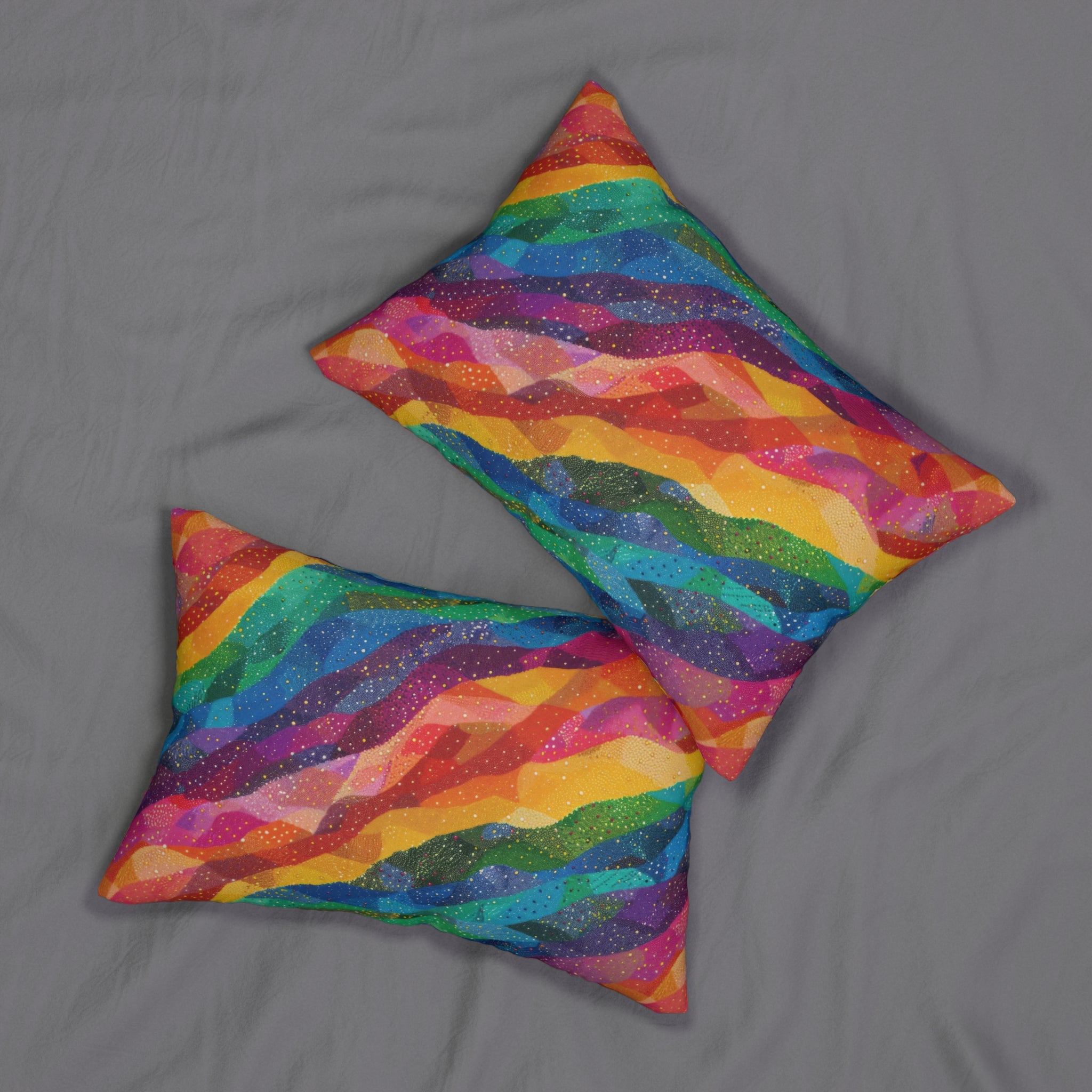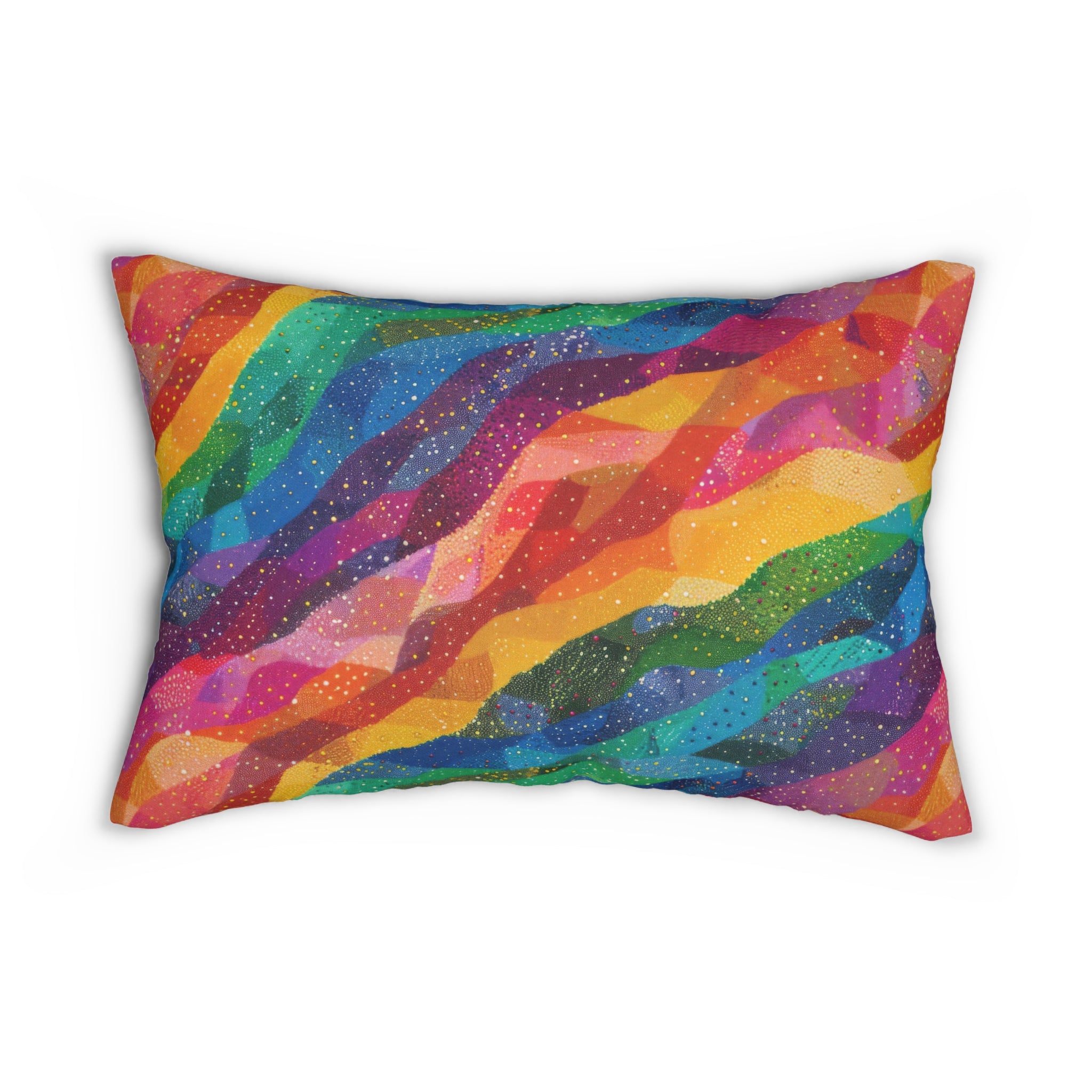 Bespattered Facade Rainbow Quilt Lumbar Throw Pillow