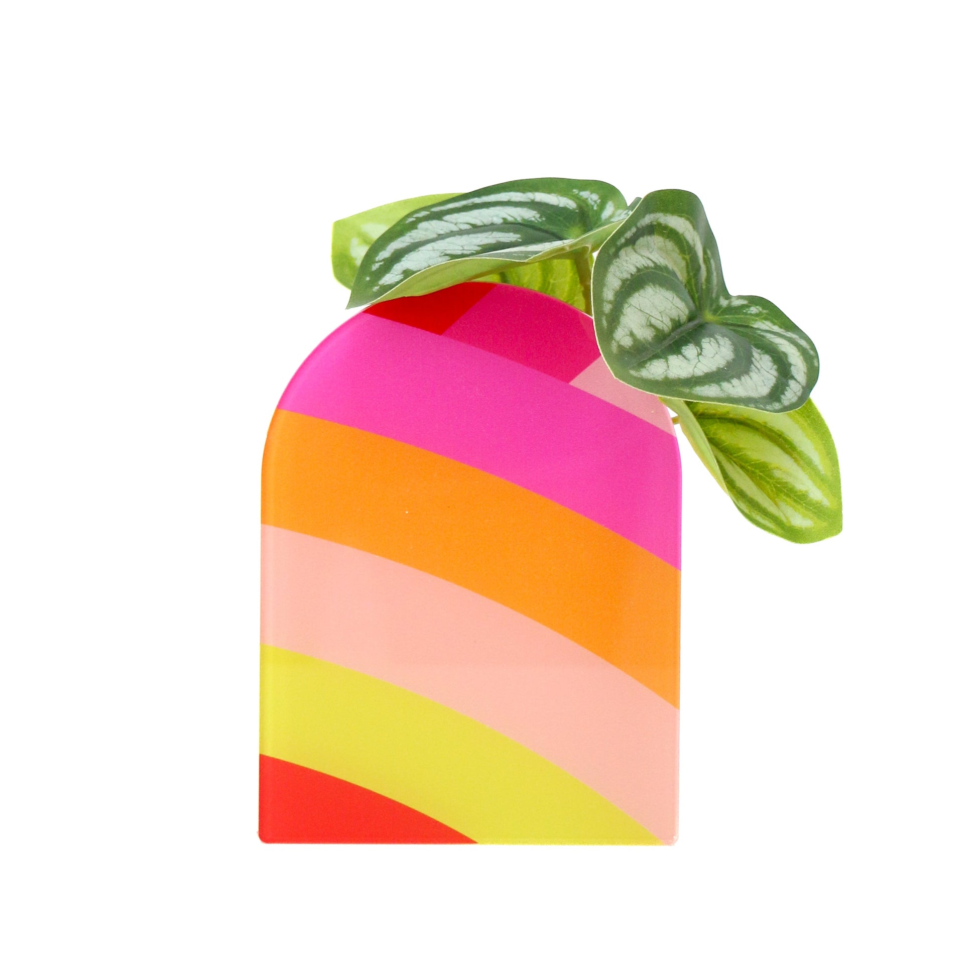 The cutest way to add a little bit of greenery or flowers to your space. These little planters feature a large clear acrylic propagation planter behind a decorative piece of patterned acrylic. Works perfect as a mini bud vase for real or faux florals too! Propagation container measures 2.75" by 4", decorative piece measures 4.25" by 5.5". Decorative acrylic piece is on the front only so all sides are exposed to light for the best propagating conditions. Please note that pattern placement on this design will vary.