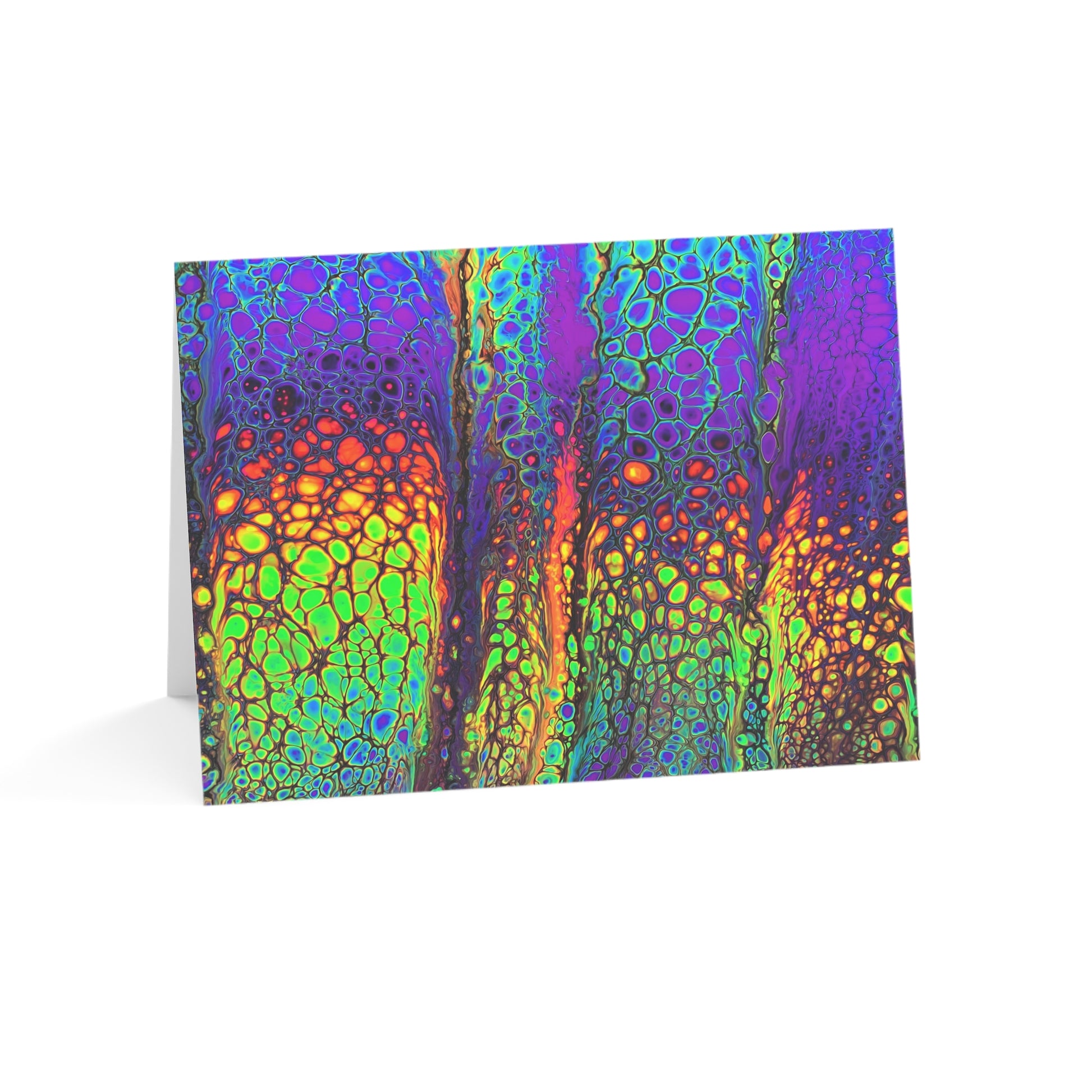 Bespattered Facade Neon Lava Greeting Cards | Sets of 1, 10, 30, or 50