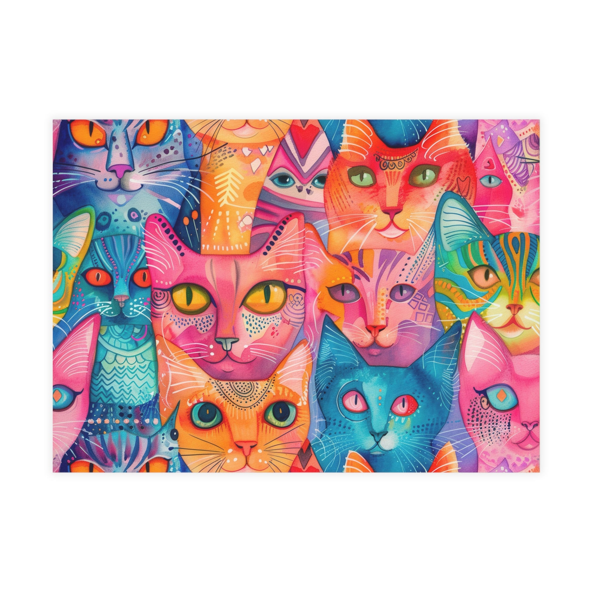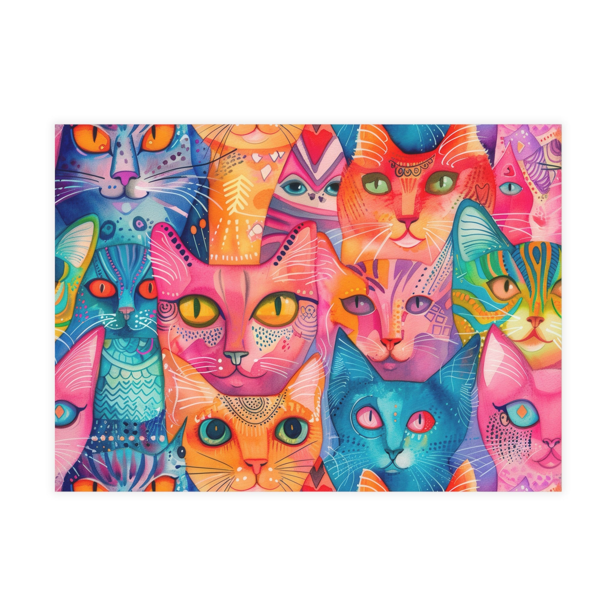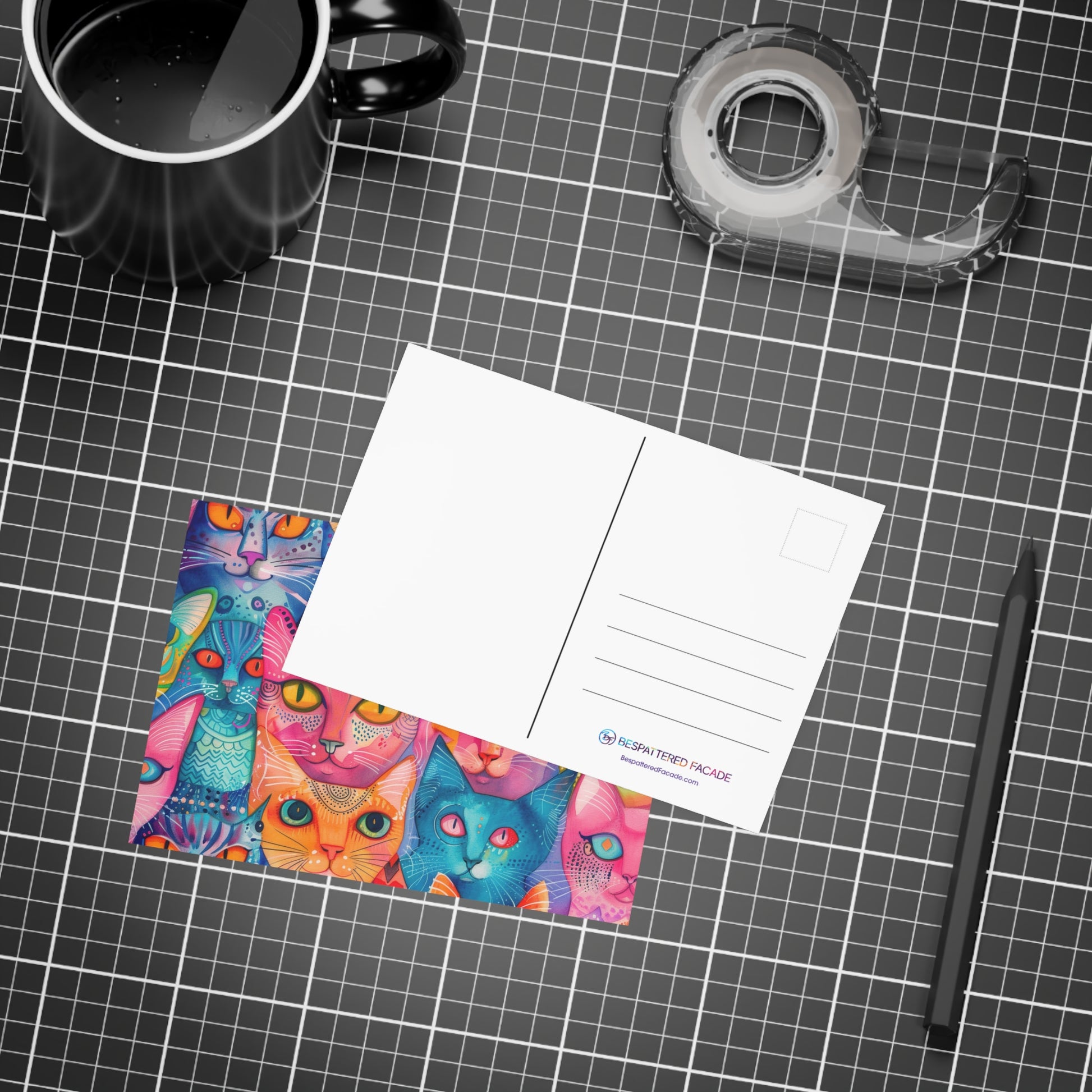 Bespattered Facade Rainbow Cat Party Postcards (no envelopes) | Sets of 10, 30, or 50
