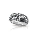 Intricately detailed, Fleur de Lace by Belle Étoile is an elegant expression of the fleur de lis. Set on a detailed lace pattern of hand-painted enamel panels laced with sterling silver and pave-set stones, Fleur de Lace is a work of true beauty.