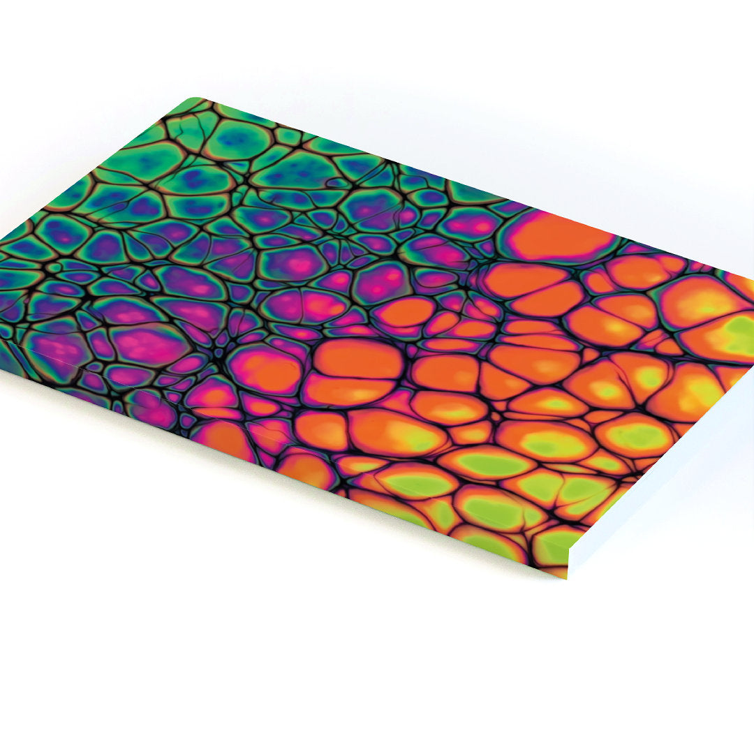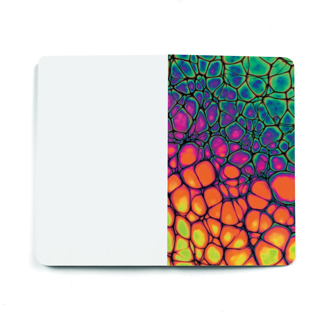 Each softcover notebook measures 5.25 x 8.25 inches and contains 144 pages of (70-pound) premium recycled paper. They have a durable, smyth-sewn binding that enables them to lay flat when opened. The (100-pound) laminated velvety soft-touch cover features a print of one of my art designs that extends to the inside cover as well for maximum color enjoyment. I also will sign the inside cover of each notebook with a metallic acid-free pen for a personalized touch.