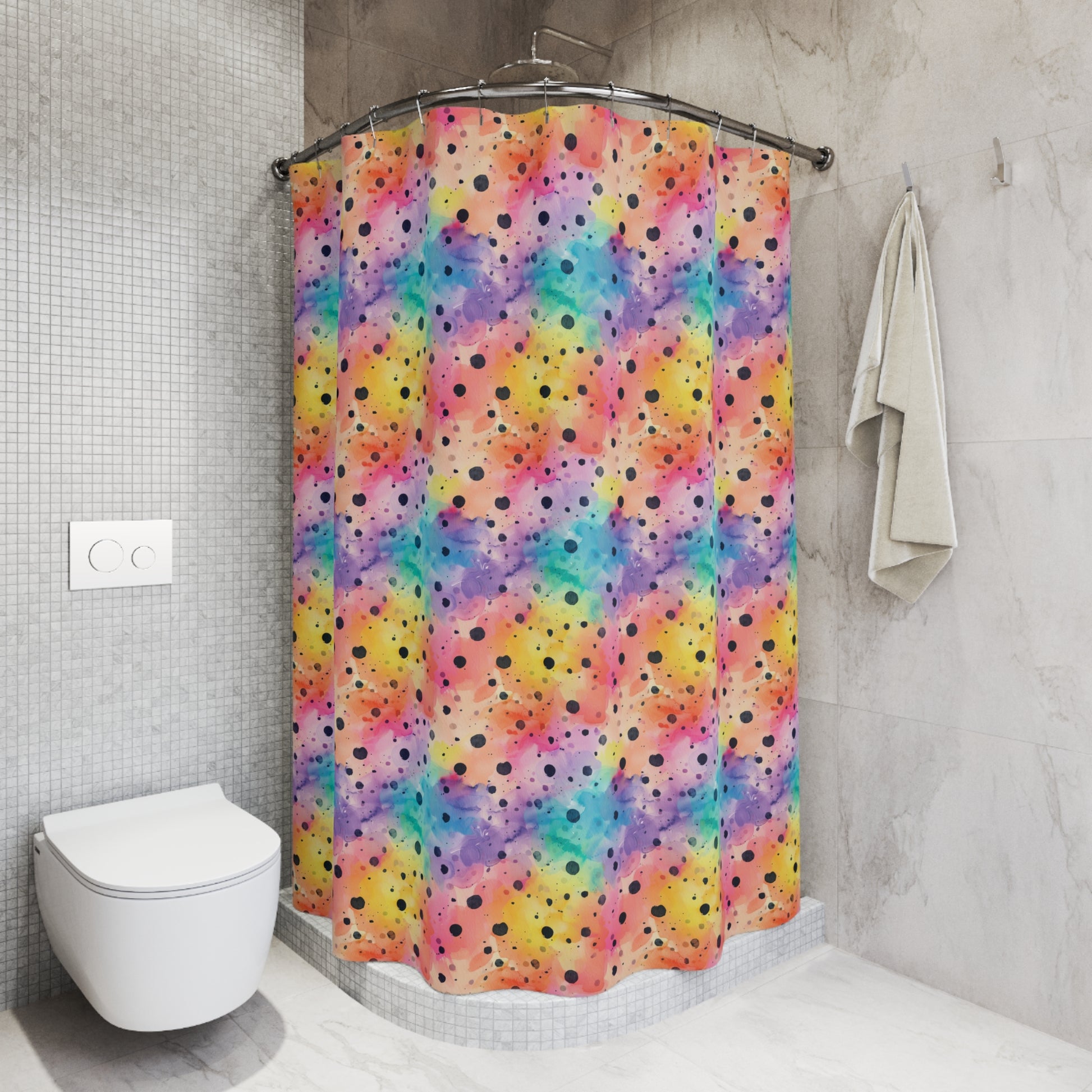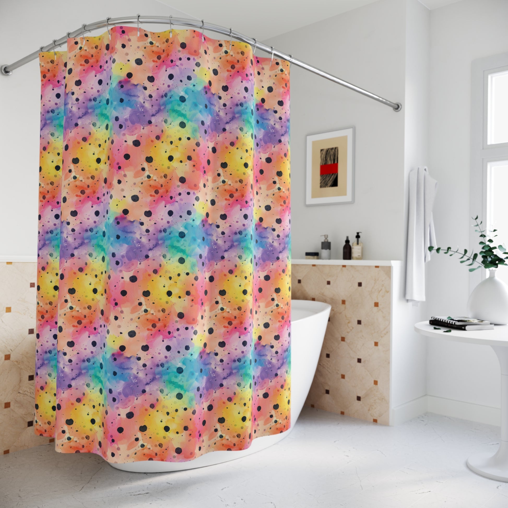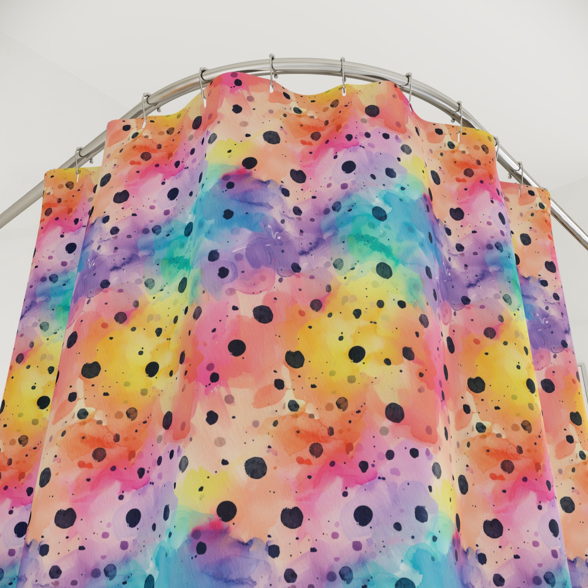 Bespattered Facade Rainbow Watercolor Dots Shower Curtain