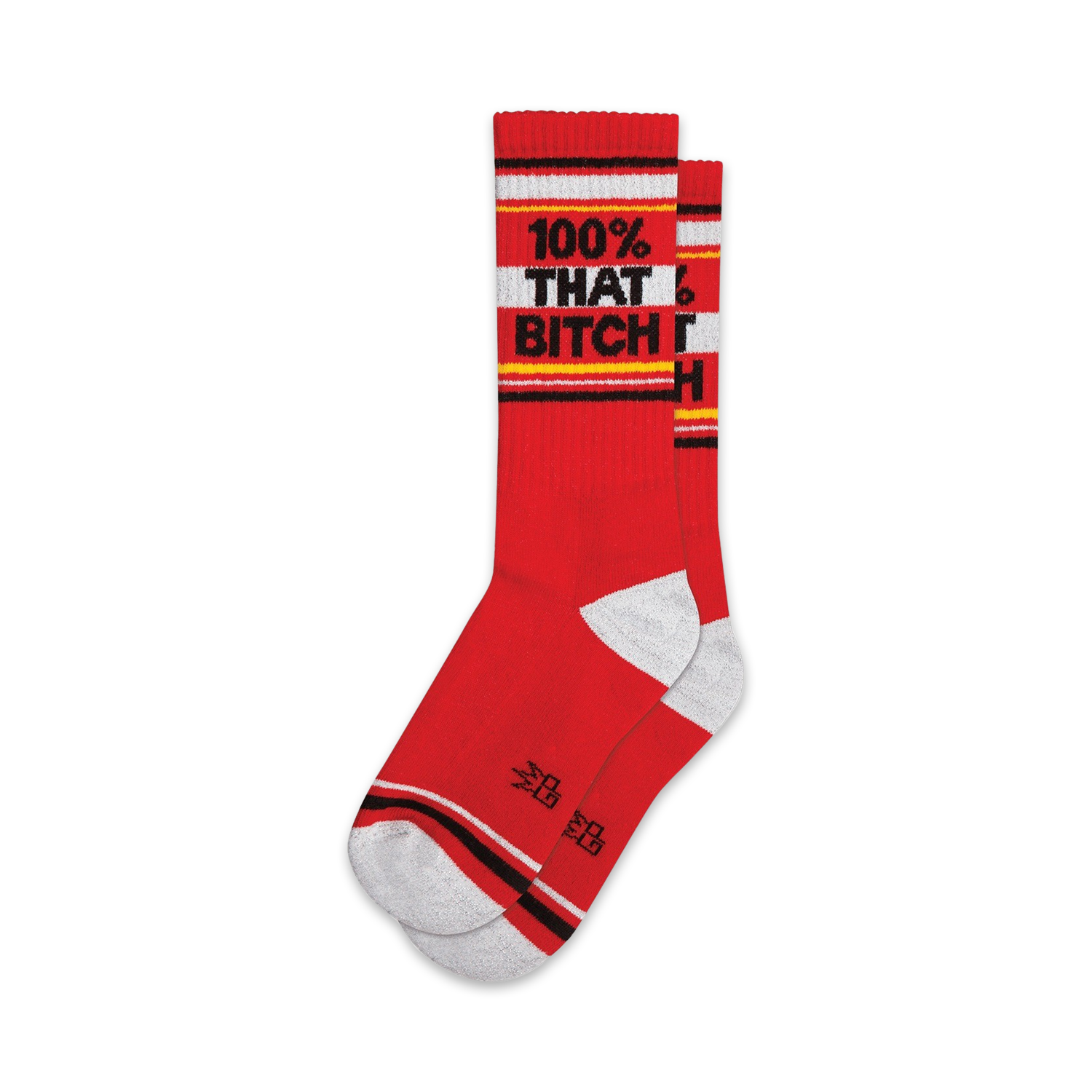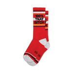 Unleash Your Inner Sass with the "100% That Bitch" Socks: Put on your sass pants and step into the spotlight with our "100% That Bitch" socks. These vibrant red socks are emblazoned with a bold statement in black and yellow, leaving no doubt about your fierce attitude. "100% That Bitch" isn't just a declaration; it's a mantra to remind you that you are confident, capable, and ready to take on the world. Slip into these long-lasting crew socks when you need a sassy boost, or gift them to your fellow fabulous females to spread the #girlpower vibes!