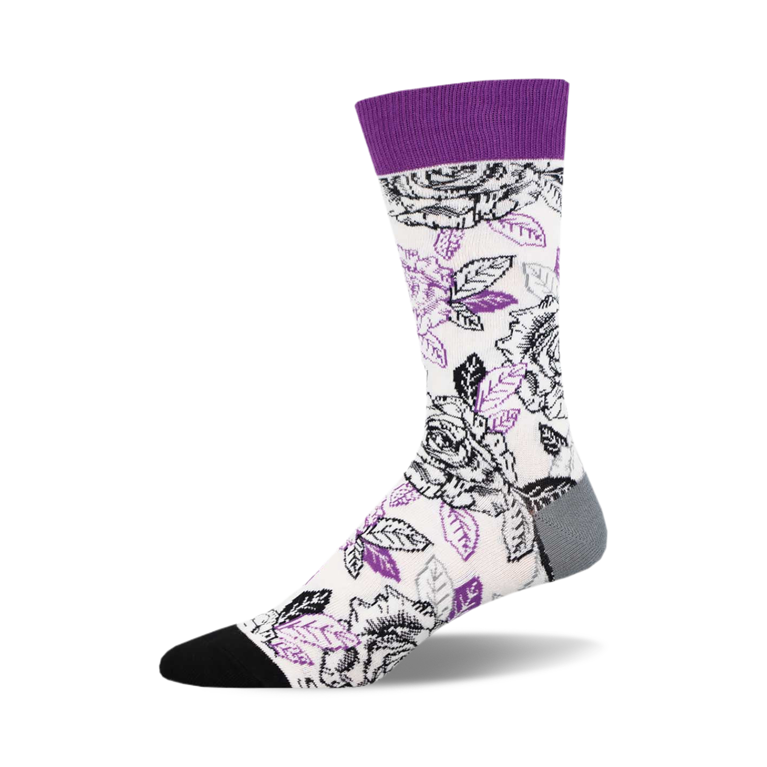 Introducing the Ace Roses, where elegance meets edginess in every step! Adorned with an intriguing pattern of black and purple roses, these crew socks are more than just footwear; they're a statement. Perfect for jazzing up any outfit, or crowning your ensemble at parties and casual gatherings alike. So why blend in when you can stand out? Slide into the spotlight with Ace Roses and show off those florals with a twist of daring colors!
