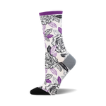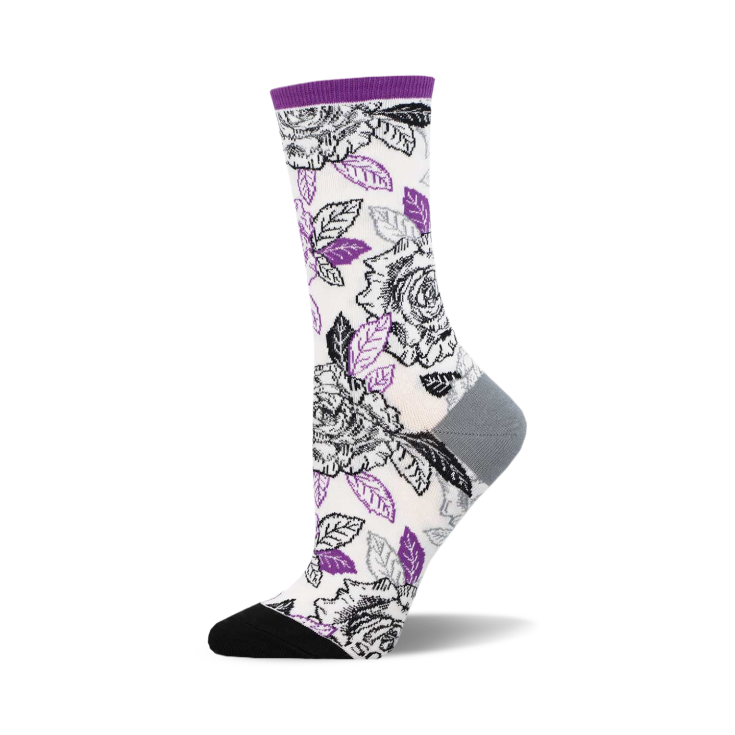 Jazz up your sock drawer with Ace Roses! These crew-length charmers sport a snazzy pattern of black and gray roses, punctuated by vibrant green leaves against a crisp white backdrop. Perfect for adding a splash of fun to your daily wear or spicing up your outfit at a casual brunch. Why settle for ordinary when you can flaunt extraordinary? Grab a pair today and let your feet bloom with style!