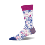 Ready to blossom at your next event? Slip into our Bi Roses socks, flaunting a fetching combo of pink and blue roses nestled against a crisp, white background. Crowned with a purple top and grounded with a blue sole, these crew socks scream garden party chic or just a pop of fun on your daily grind. When's the last time your socks pulled double duty as conversation starters? Pair them with anything from sneakers to your snazziest suit and watch the compliments roll in. So why wait? Give your sock drawer a rosy update now!