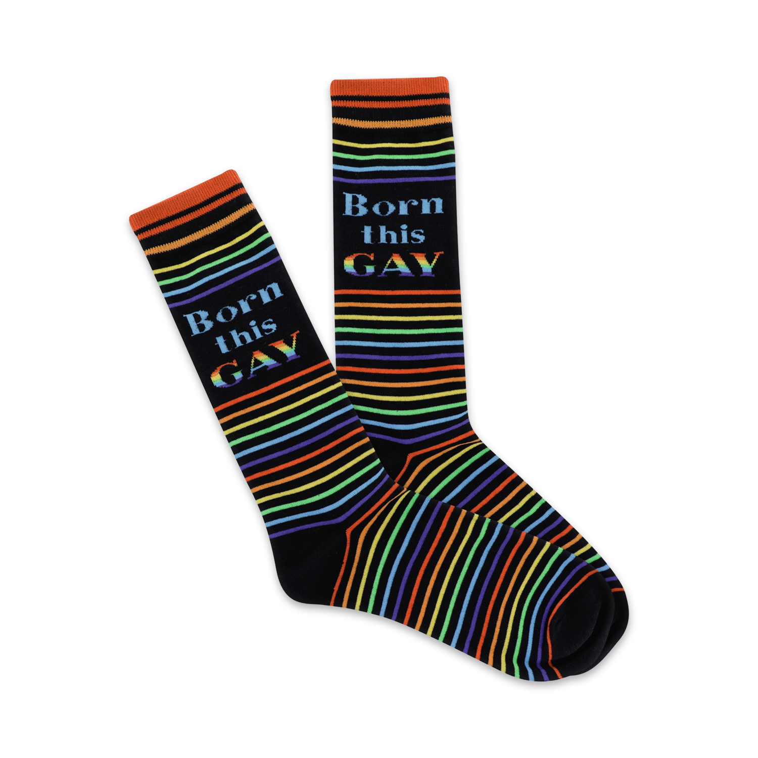 Unleash your Pride with Born This Gay Socks! These epic crew socks are ablaze with horizontal rainbow stripes, making a bold statement with every step. Show off your true colors and celebrate the beauty of diversity. Strut your stuff in style and let your feet do the talking. Join the rainbow revolution and own your fabulousness!