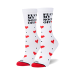 Sneak into a sassy style that'll make your feet do a sock dance! "Fuck My Socks Off" socks serve a side of cheekiness with a blush of red hearts and a sprinkle of black polka dots. These crew-length socks are guaranteed to turn your feet into the life of the party.