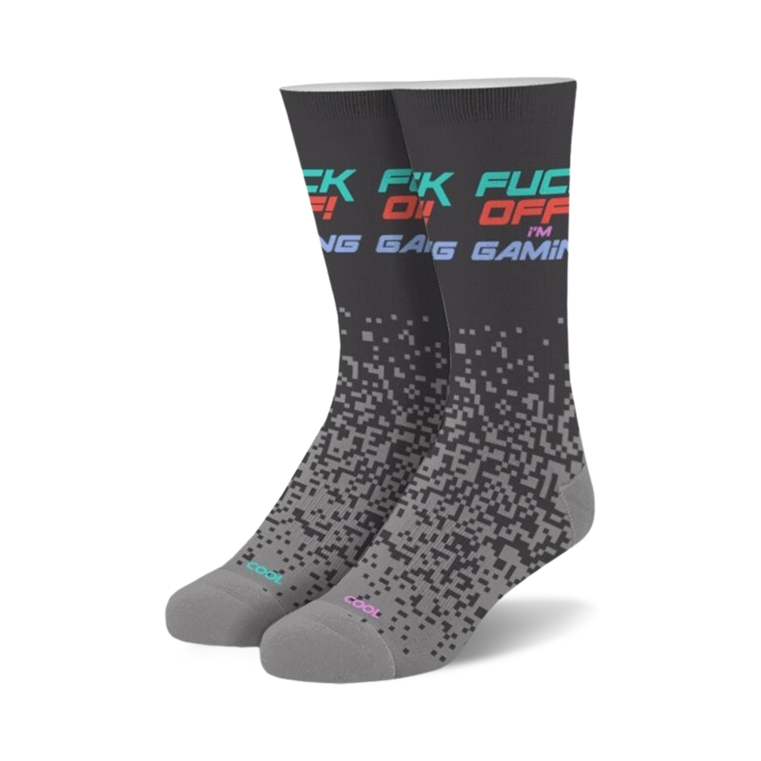 Unleash the gamer within! These Fuck Off I'm Gaming socks combine bold lettering with a geometric pattern to boldly declare your gaming status. Whether you're a pro player or just enjoy kicking back on the couch with a controller, these socks will keep your feet comfy and stylish. Rock them at your next LAN party or online gaming session and let everyone know you're not to be disturbed.