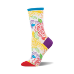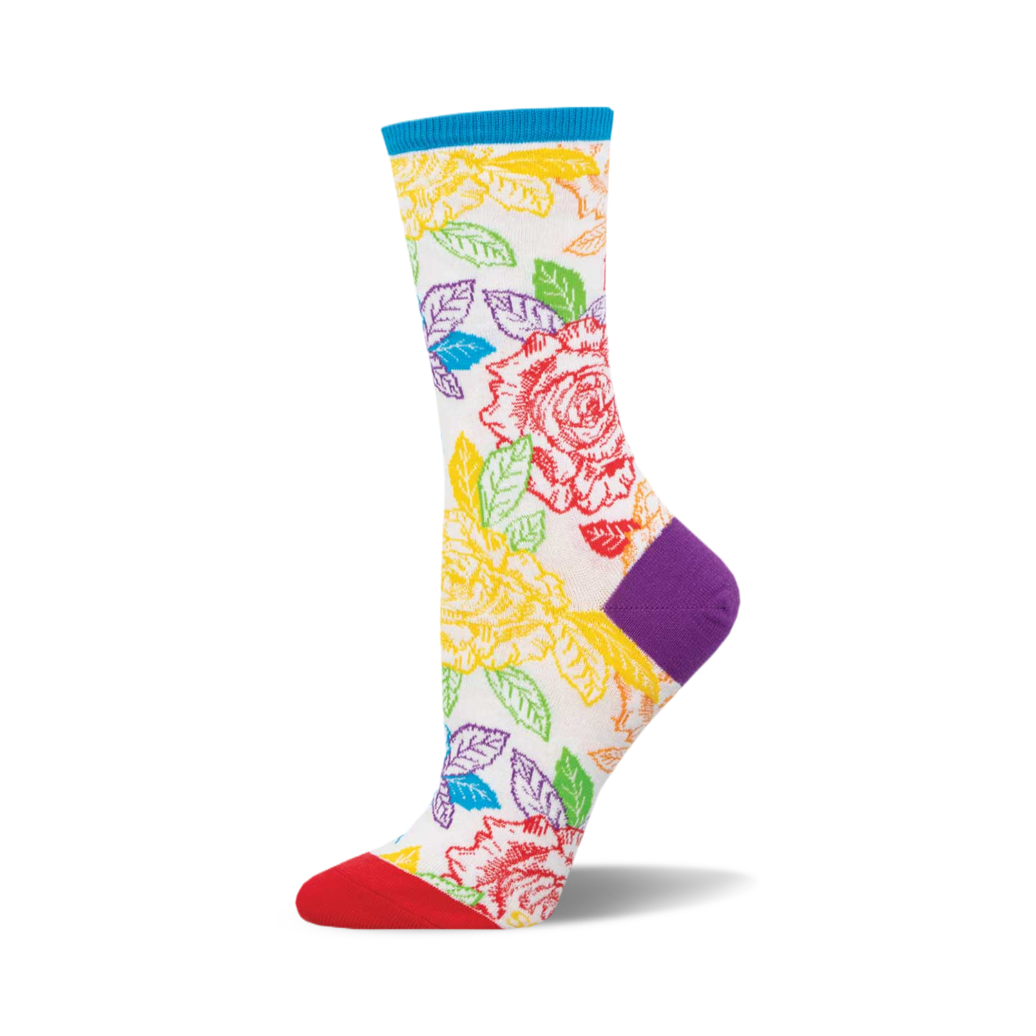 Imagine twirling through your day with a burst of color at your feet! Gay Roses socks are a vivid tapestry of roses and leaves, dancing in a spectrum from fiery red to bold purple against a clean white backdrop. Whether you're jazzing up a Monday morning or adding a splash to your weekend wear, these socks bring a pop of fun and a dash of sass wherever you go. Hosting a garden party? Strut around flaunting your florals! Lounging at home? Cozy up in style! Why blend in when you were born to stand out? Grab a pair, and let your feet do the talking!