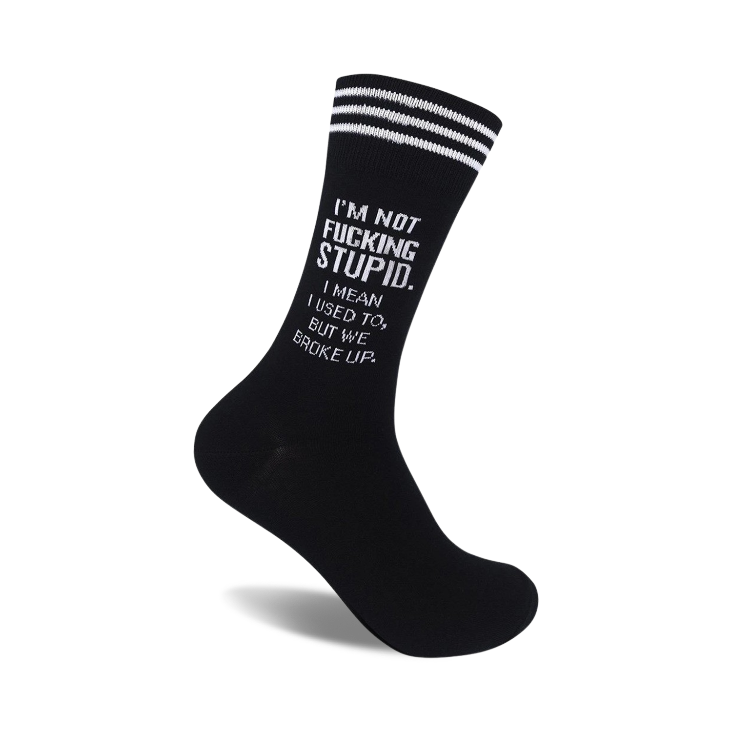 Who says socks can't be funny? These I'm Not Fucking Stupid crew socks are a hilarious way to add personality to your feet. They're perfect for anyone who loves a good laugh, or anyone who just wants to show the world they're not afraid to be a little sassy.