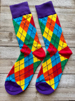 Rainbow Argyle Unisex Adult Crew Socks