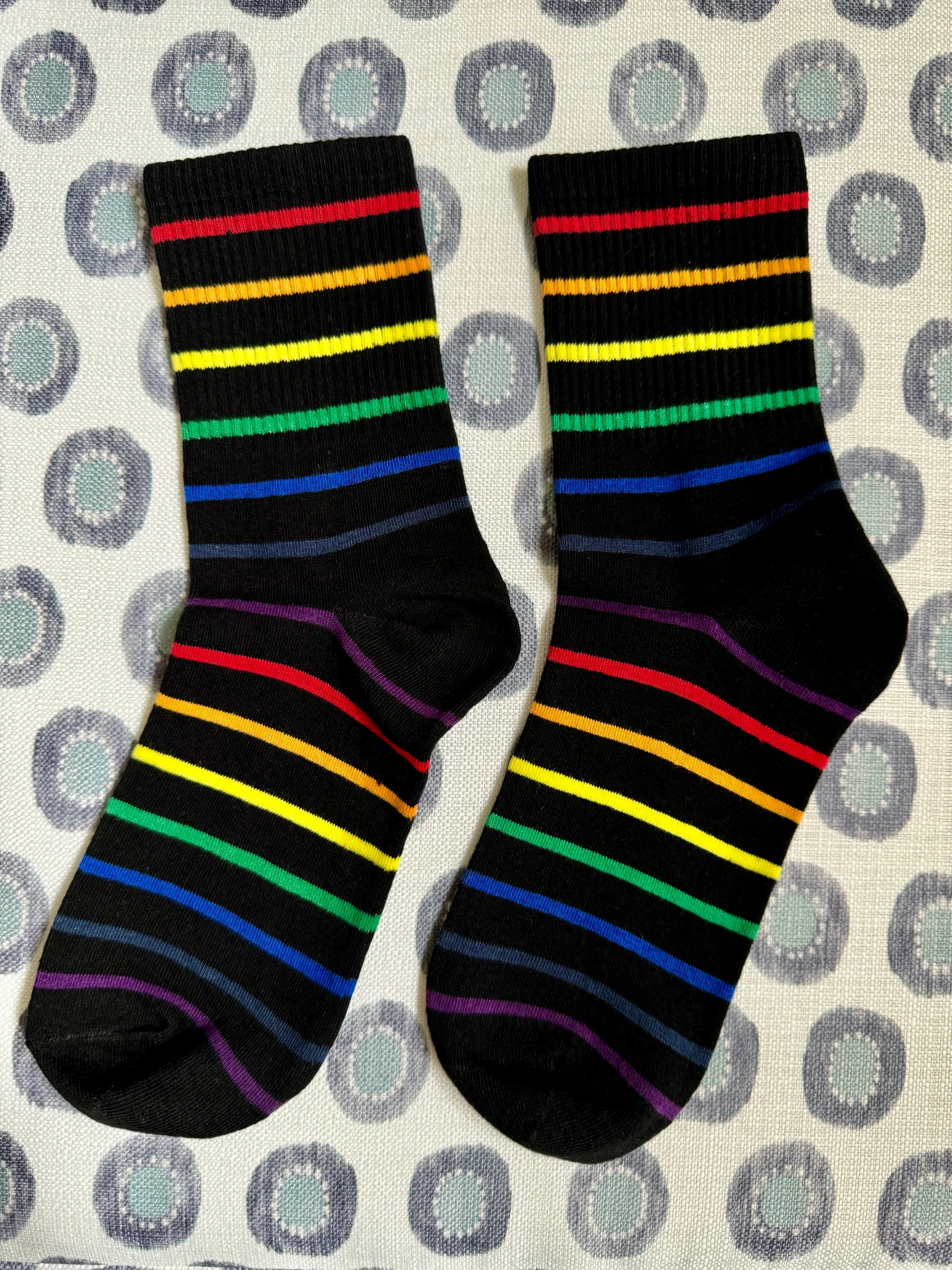 Do you prefer your rainbows with a splash of black for contrast? If so, these soft, colorful socks are the ones for you!