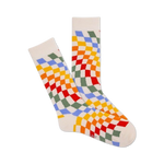 Check out these retro wave checkerboard crew socks for men! Stand out with their vibrant checkerboard pattern featuring a rad blend of red, orange, yellow, green, blue, and light blue. Whether you're rocking them at the office or hitting the streets, these socks are guaranteed to turn heads and bring a smile to your face.