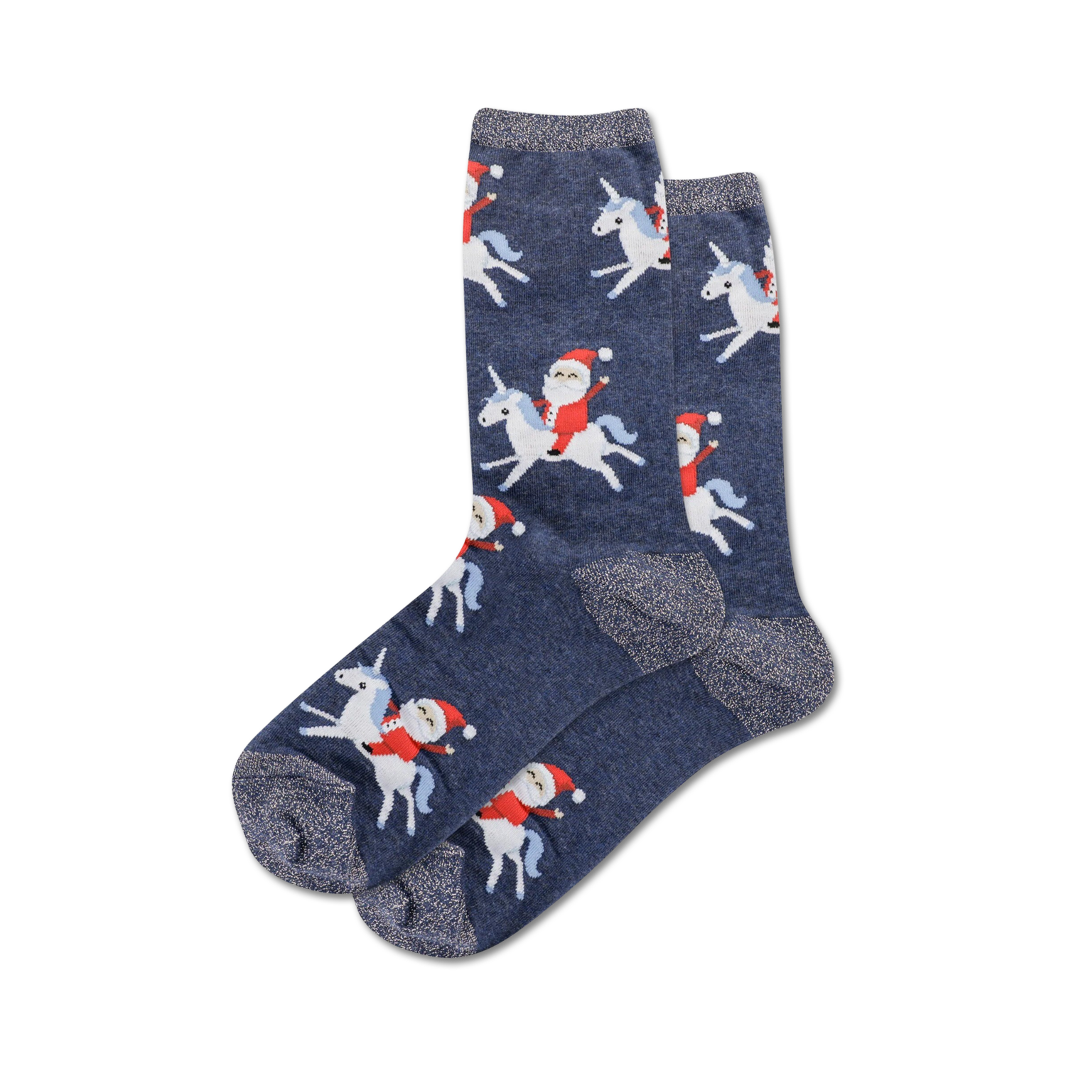 Jolly up your feet with our Santa Unicorn crew socks! These aren't your average socks. They're a festive fusion of Christmas cheer and mythical magic. Picture Santa Claus, in his classic red suit, riding a majestic white unicorn with a pink mane and tail. And the best part? These socks are as comfy as they are jolly. Slip into a pair and let the Christmas spirit take over.