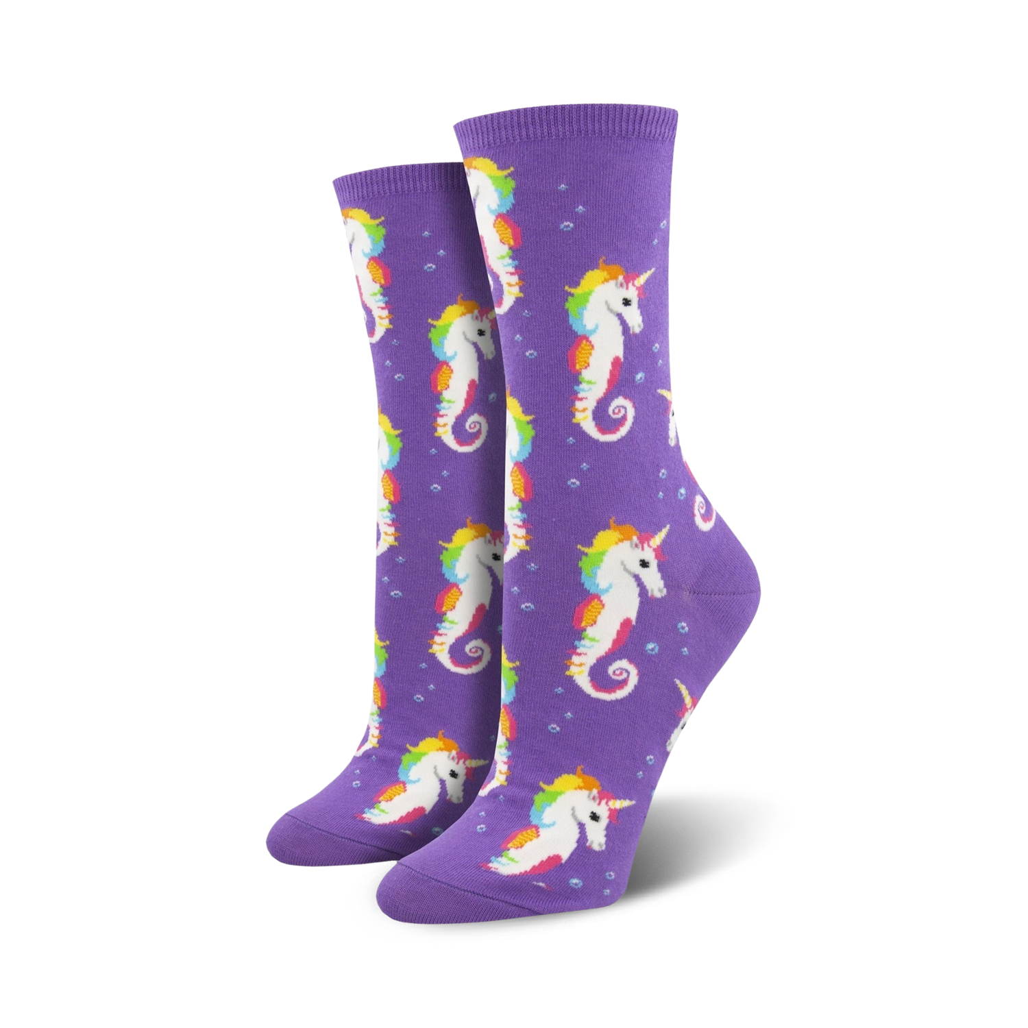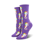Dive into a splash of magic with the Sea Unicorn socks that combine the majestic unicorn and the elegance of a seahorse in a vivid rainbow pattern. These socks are a testament that the fusion of mythical creatures results in mythical footwear. Show off your mystical, mythical side to the world, one hoof at a time.