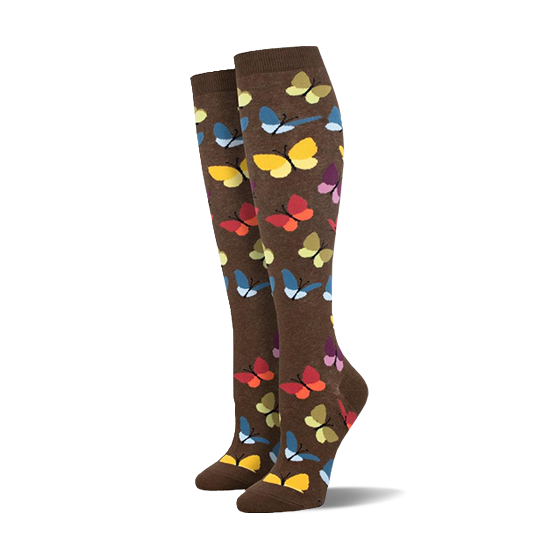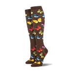 Flutter into any event with our vibrant "Wind Beneath Our Wings" socks! These brown crew-length charmers boast a kaleidoscope of colorful butterflies guaranteed to add a splash of fun to your feet. Perfect for garden parties or just lounging around, they add a touch of whimsy to whatever you wear. Ready to let your style soar with a pair that captures your spirited vibe? Snatch up these butterfly beauties and let your true colors shine at your next casual hangout or cozy retreat!